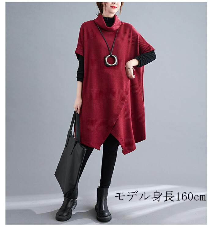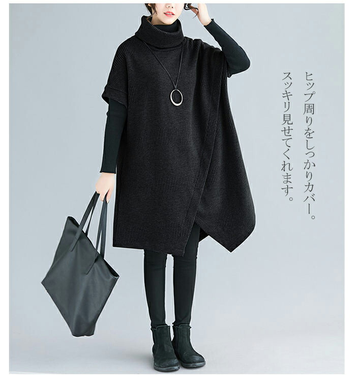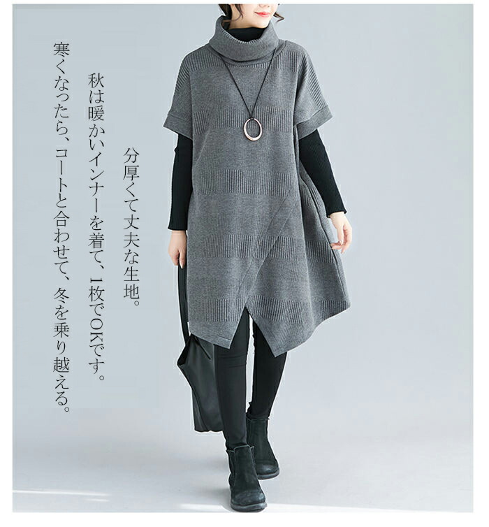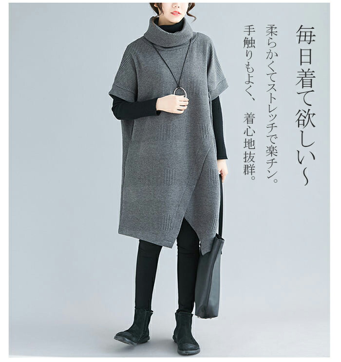 ニットワンピース レディース チュニッ チュニック 新作 グレー ブラック カーキ ワインレッド