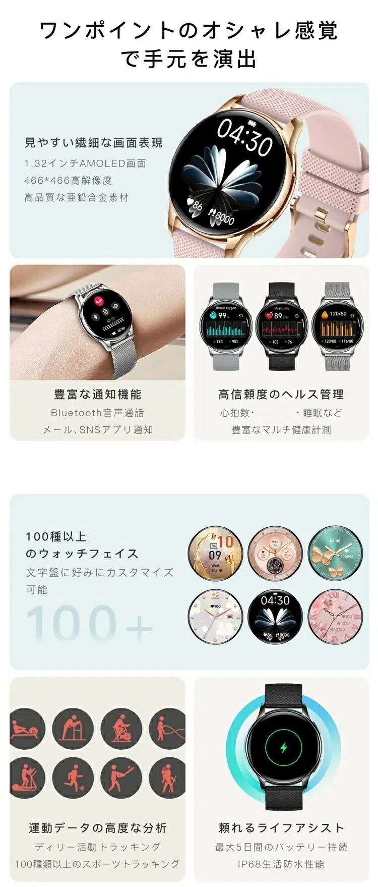 スマートウォッチ レディース メンズ ブラック(シリコン) ゴールド(シリコン) シルバー(シリコン) ブラック(ステンレスーメッシュ) シルバー(ステンレスーメッシュ)