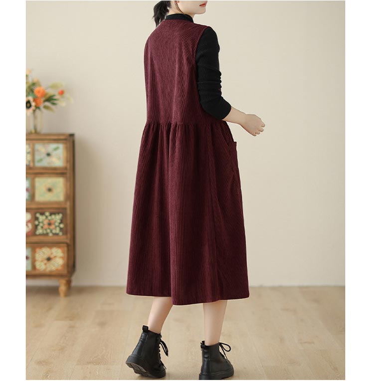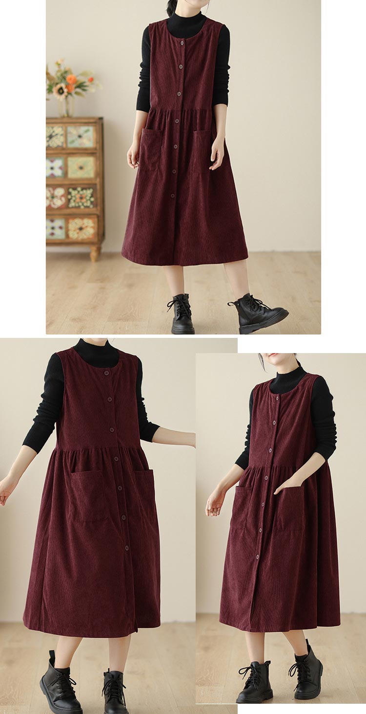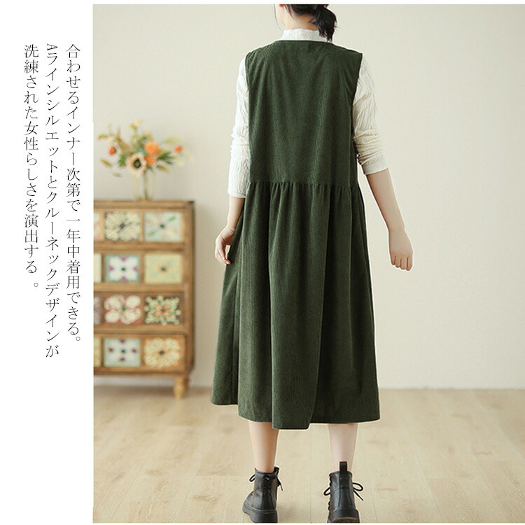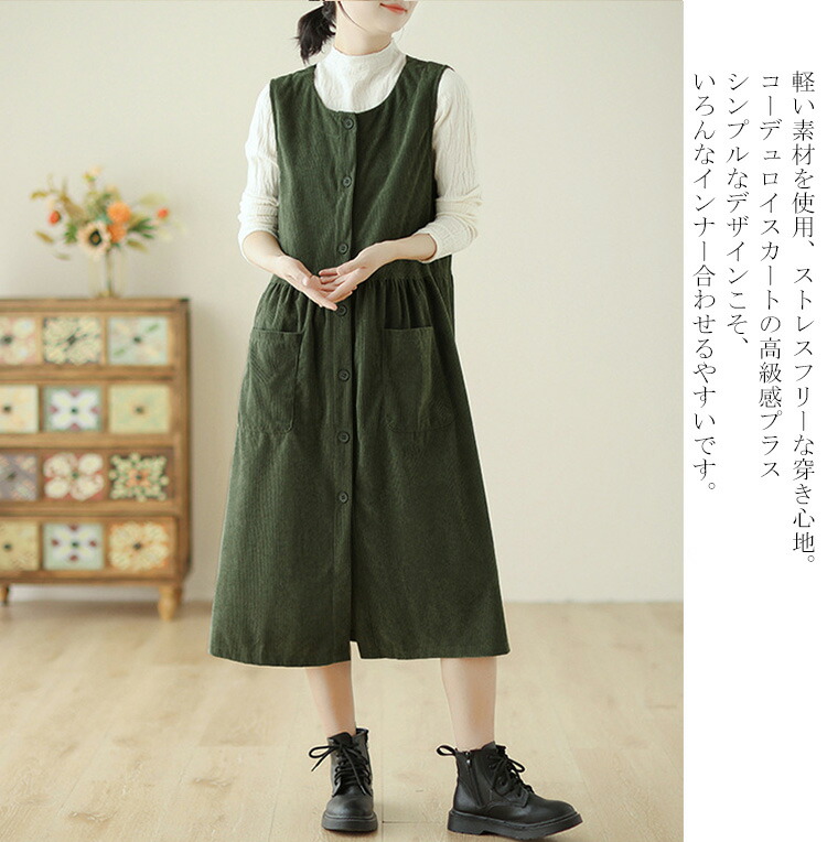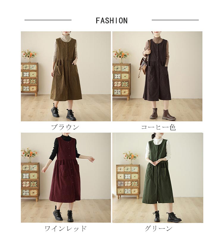ワンピース ジャンパースカート レディ グリーン ブラウン ワインレッド コーヒー色 M L XL 2XL