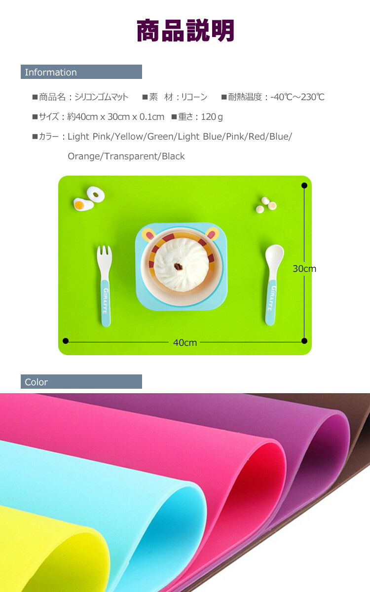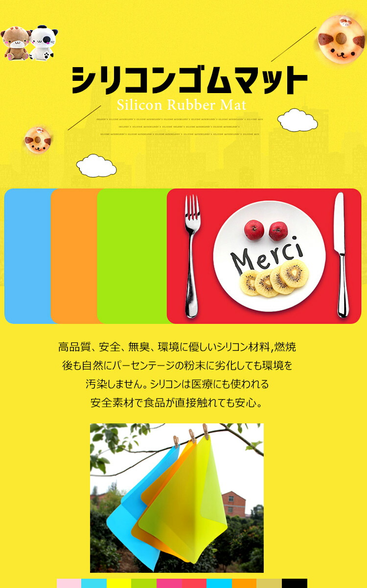 シリコンマット カットしやすい 洗える 配膳用品 キッチンファブリック ランチョンマット 続々入荷中 [ライトピンク] [イエロー] [グリーン] [ライトブルー] [ピンク] [ブルー] [オレンジ] [透明] [ブラック] [レッド]