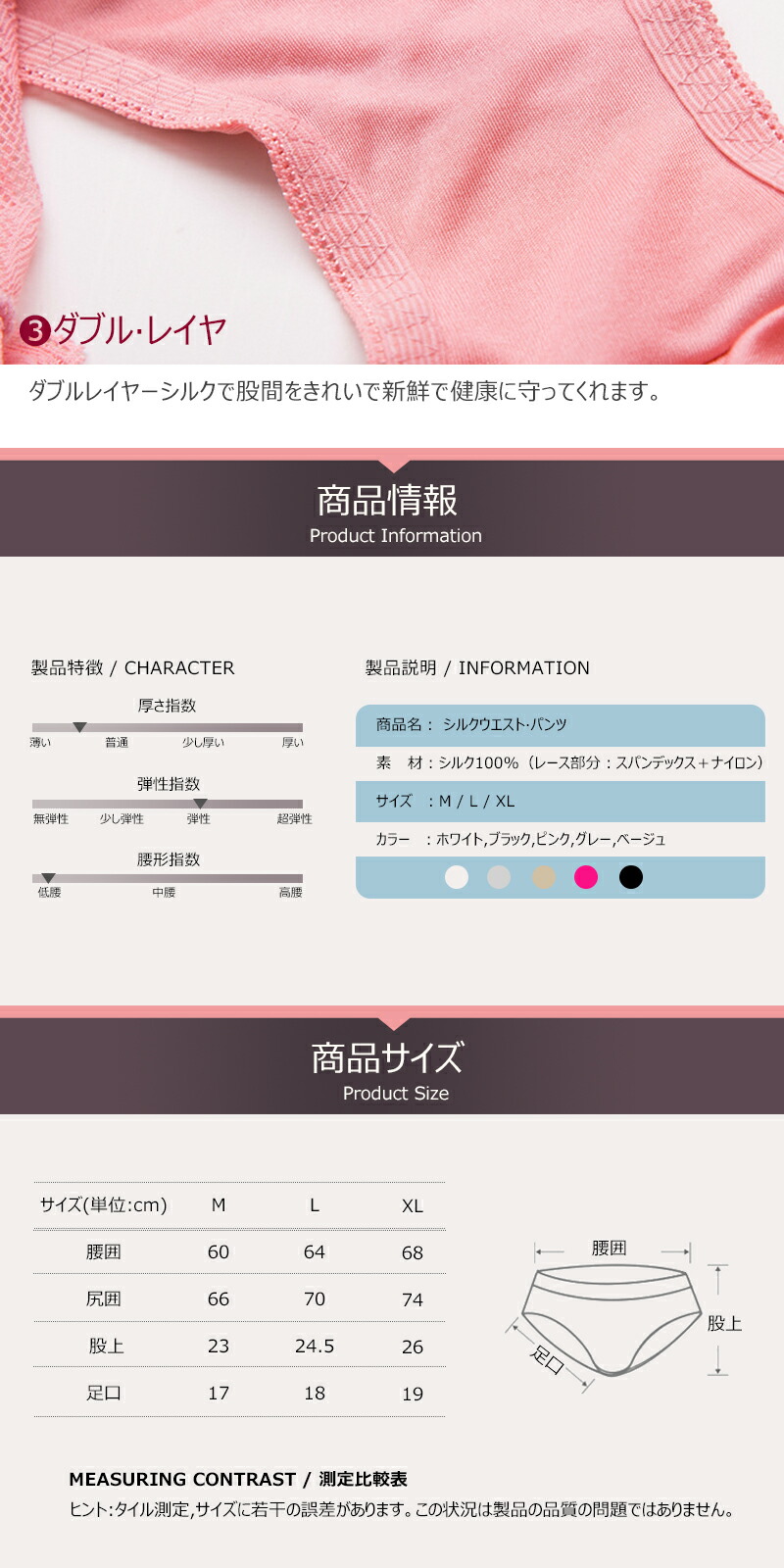 シルク ショーツ レース パンツ 絹 レディース インナー 下着 セット その他 通販 [Mサイズ] [Lサイズ] [XLサイズ] [ホワイト] [ブラック] [ピンク] [グレー] [ベージュ]