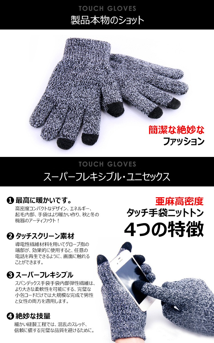 手袋 スマホ対応 暖かい スマホ手袋 バッグ 小物 ブランド雑貨 通販 ブラック ダークグレー ブルー グレー