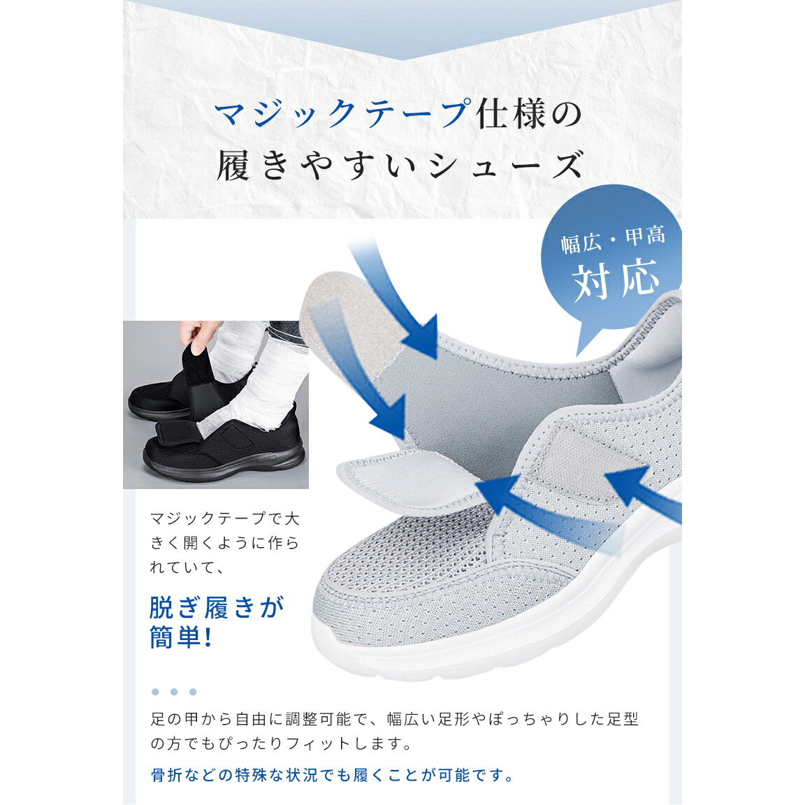 介護シューズ 幅広 スニーカー リハビ ブラック グレー 23.0 23.5 24.0 24.5 25.0 25.5 26.0 26.5 27.0 27.5 28.0