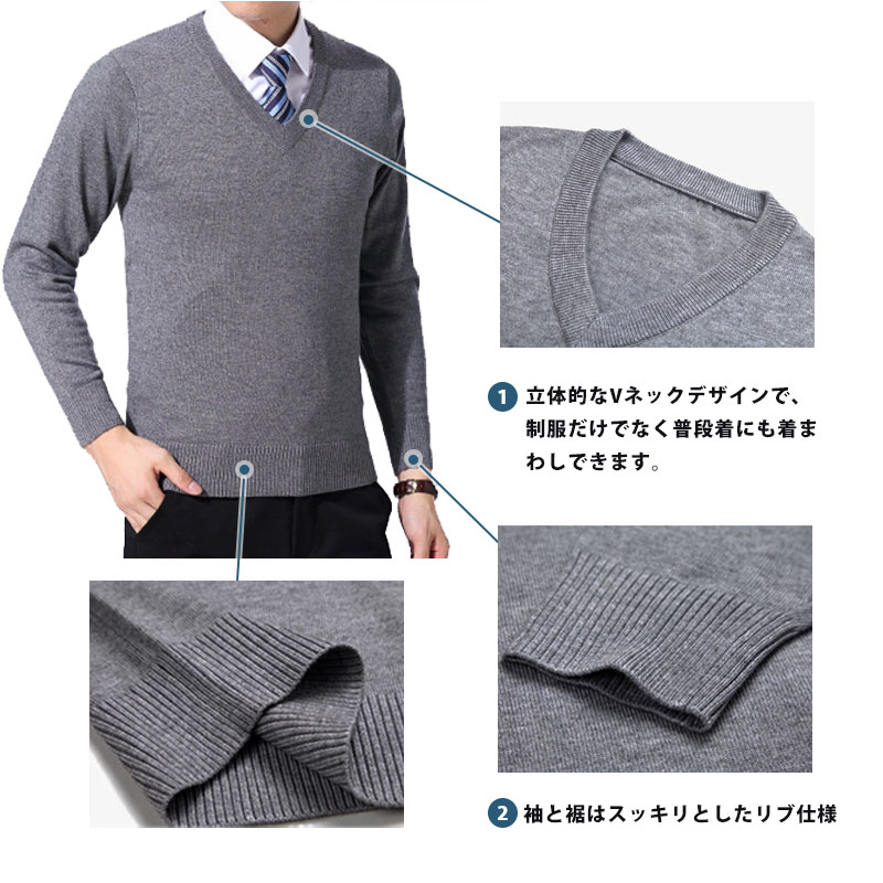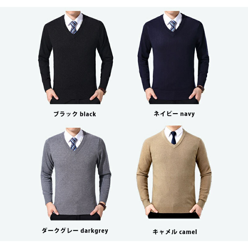 セーター メンズ Vネック ビジネス トップス ニット セーター 豊富 ブラック ネイビー ダークグレー キャメル M L XL 2XL 3XL