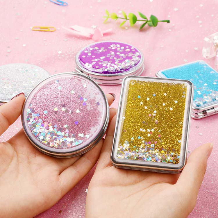 鏡 手鏡 コンパクトミラー 流れる 液 バッグ 小物 ブランド雑貨 豊富 ピンク ゴールド ブルー シルバー パープル 円形 長方形
