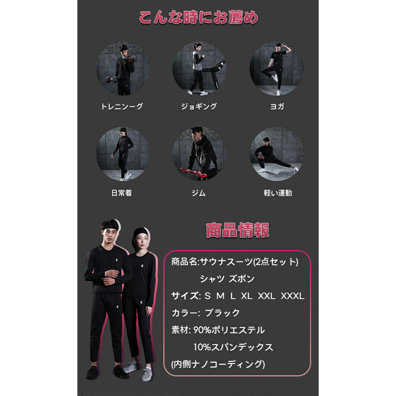 サウナスーツ ラウンドネック メンズ フィットネス トレーニング ウェア サウナスーツ 続々登場 S M L XL XXL XXXL