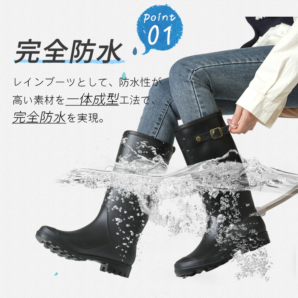 長靴 レディース 晴雨兼用 完全防水 靴 人気 ミドル ロング 23.0 23.5 24.0 24.5 25.0 25.5