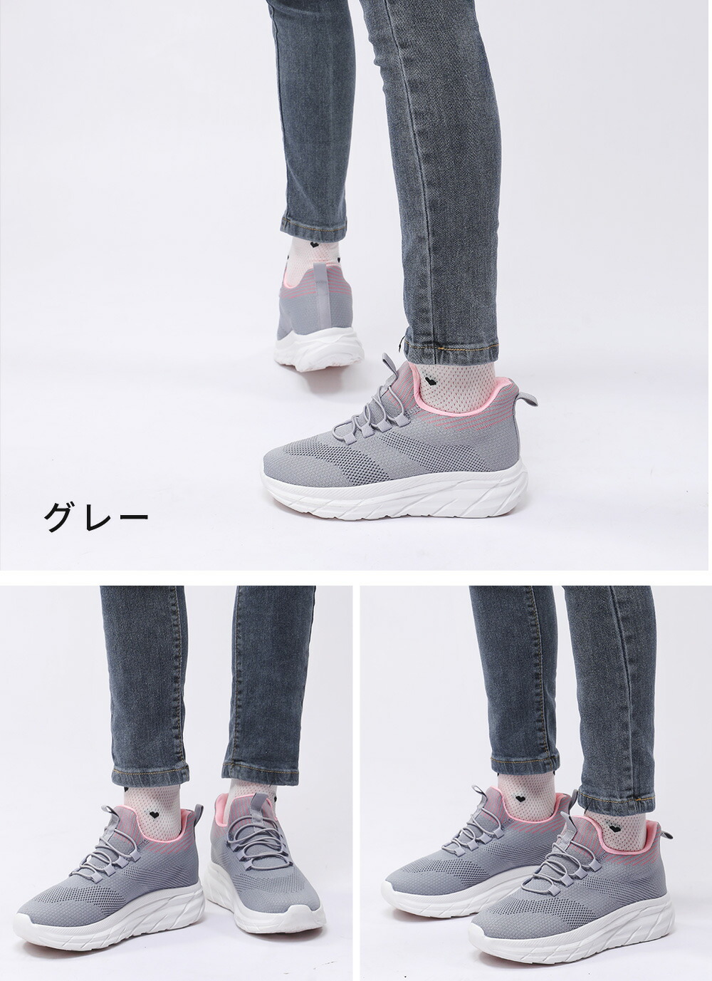 スニーカー レディース 超軽量 立った 靴 続々登場 ブラック グレー ネイビー ピンク 23.0 23.5 24.0 24.5 25.0 25.5