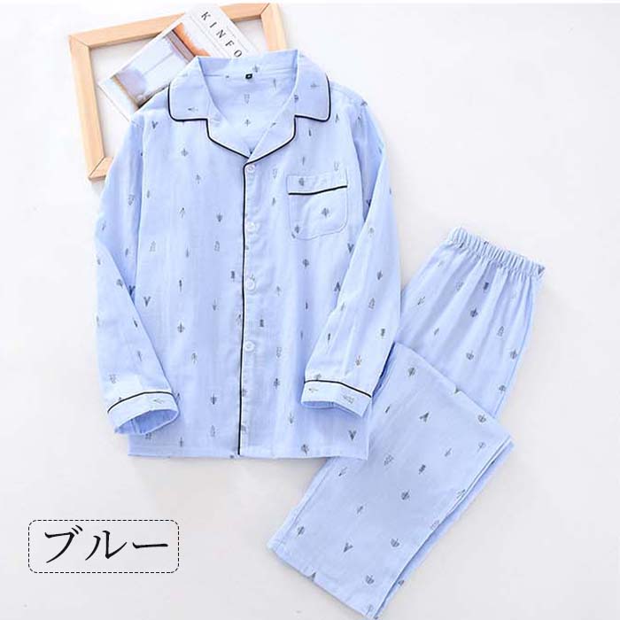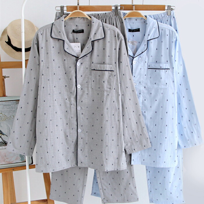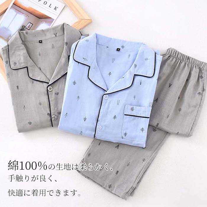 メンズ 綿100% パジャマ ルームウ メンズ ナイトウェア ルームウェア パジャマ 早い者勝ち グレー ブルー M L XL