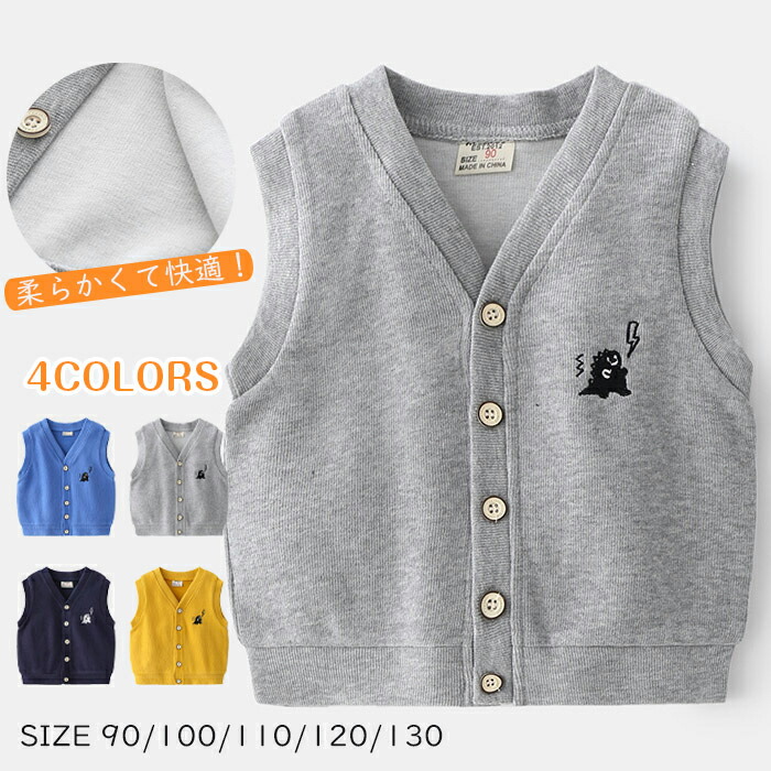 カーディガン ベスト キッズ ベビー キッズ トップス ベスト 続々登場 ブルー グレー ネイビー イエロー 90cm 100cm 110cm 120cm 130cm