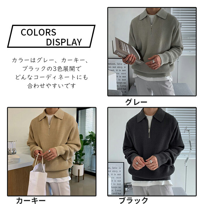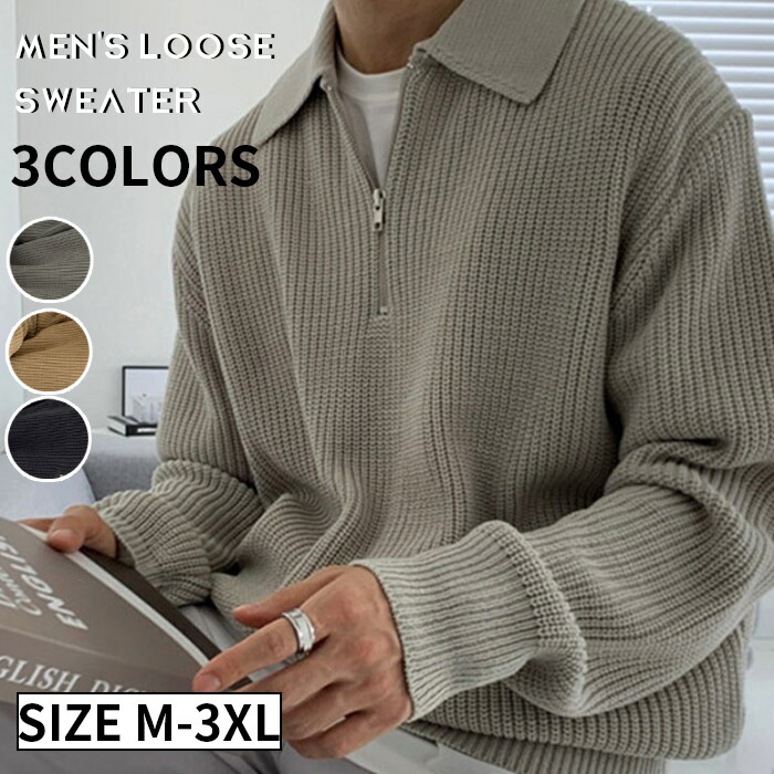 セーター メンズ ニット 長袖 プルオ トップス ニット セーター 豊富 グレー カーキー ブラック M L XL 2XL 3XL