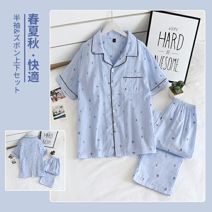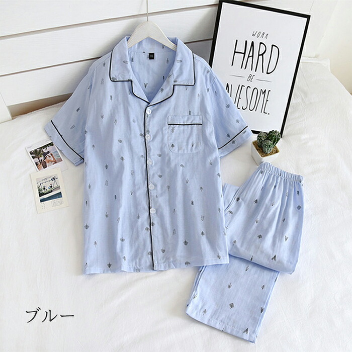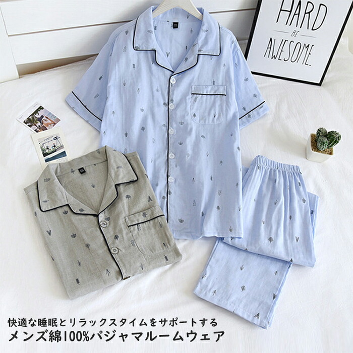 メンズ 綿100% パジャマ ルームウ メンズ ナイトウェア ルームウェア パジャマ 早い者勝ち グレー ブルー M L XL