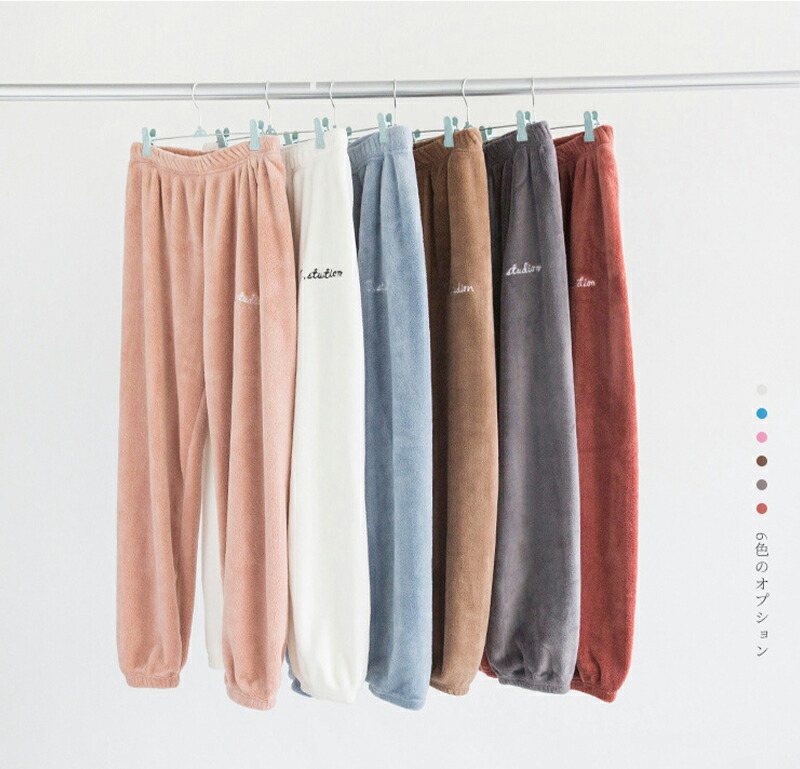 ルームパンツ レディース もこもこ ロ レディース ナイトウェア ルームウェア ルームウェア ボトムス 豊富 M L ホワイト グレー コーヒー ブルー レッド ピンク ブラック