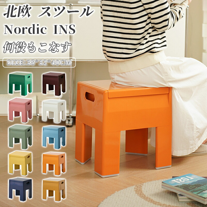 収納スツール おしゃれ 北欧風 玄関ス イエロー ホワイト グリーン ピンク ネイビー ブラウン 抹茶グリーン オレンジ ブルー