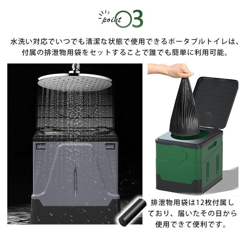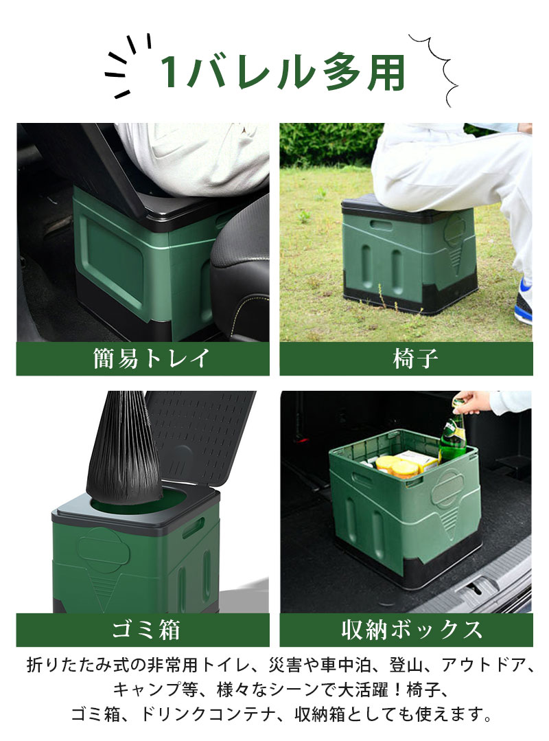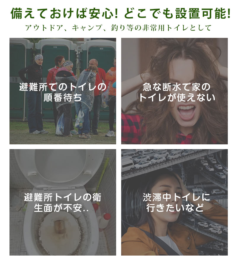 組み立て簡単で、凝固剤や処理袋がセットになった携帯トイレと一緒に使えば実用的です。