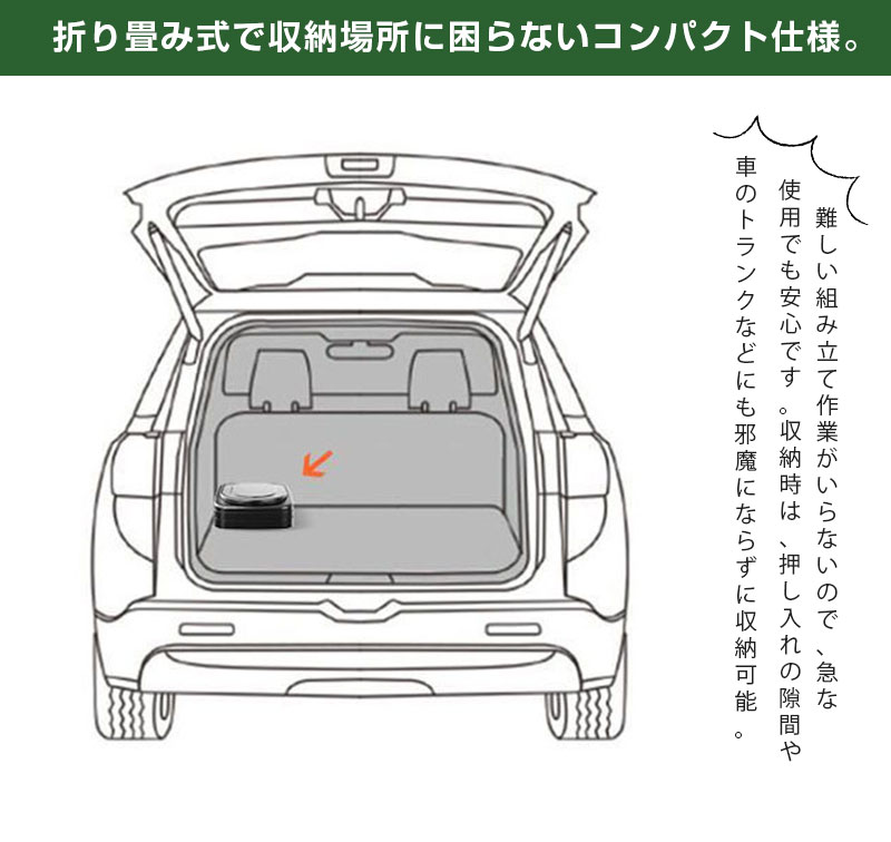 不要な時はコンパクトに畳むことができますので 持ち運びに困ることもありません 。車に常備しておけば 外出先でもいつでも使用できます。