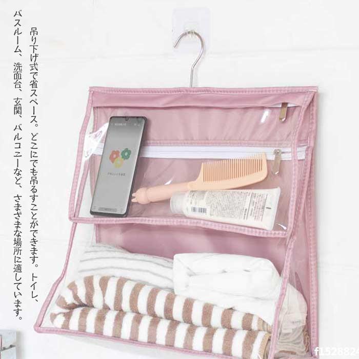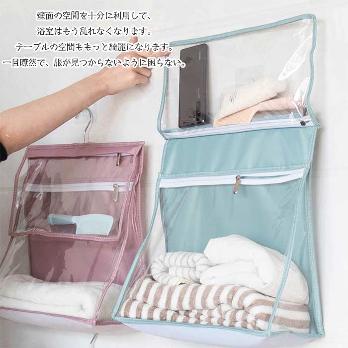 浴室防水バッグ 壁掛け袋 防水収納袋 ピンク ブルー ダークグレー