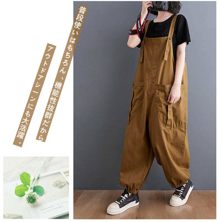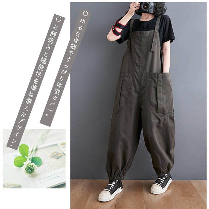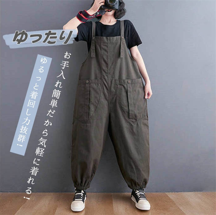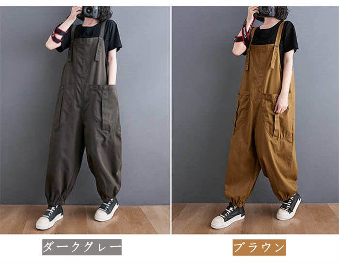 サロペット オールインワン パンツ レ レディースファッション 新作 ダークグレー ブラウン M L XL 2XL