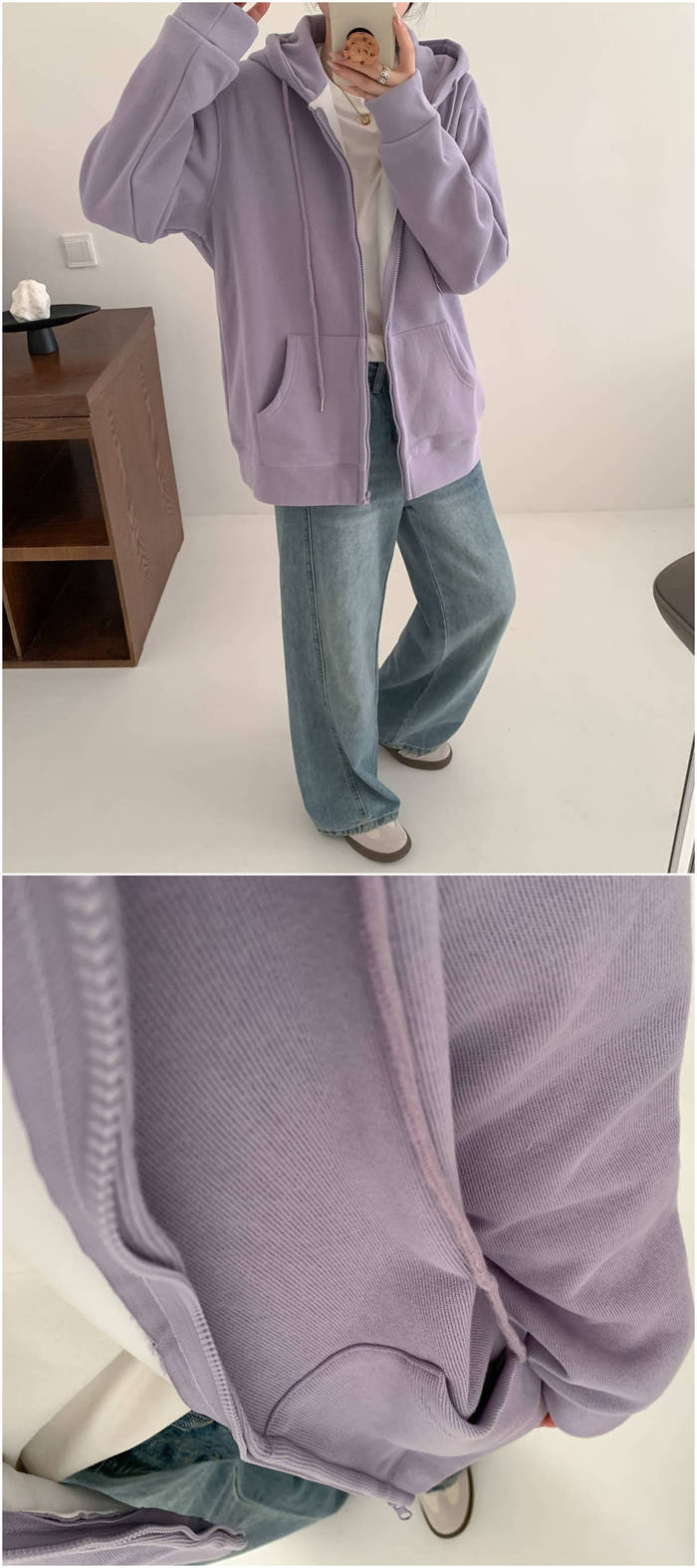ジップパーカー 裏ボア 綿 厚手 フー レディースファッション 特集 グレー パープル M L