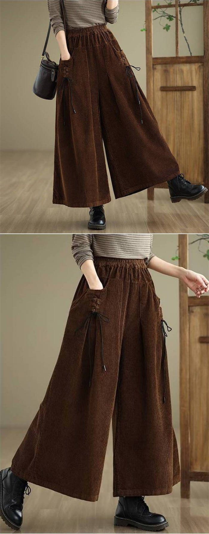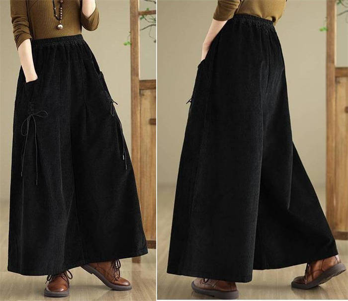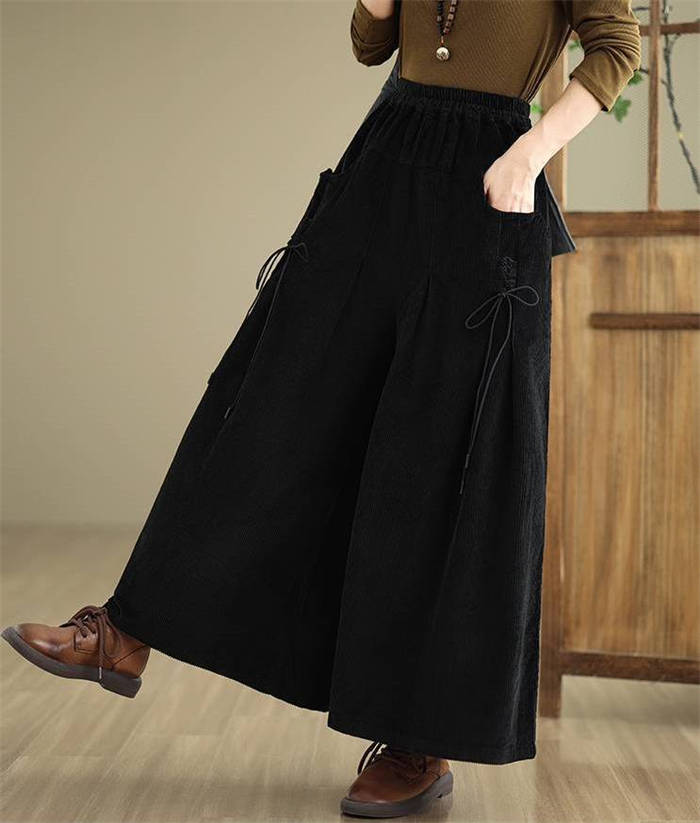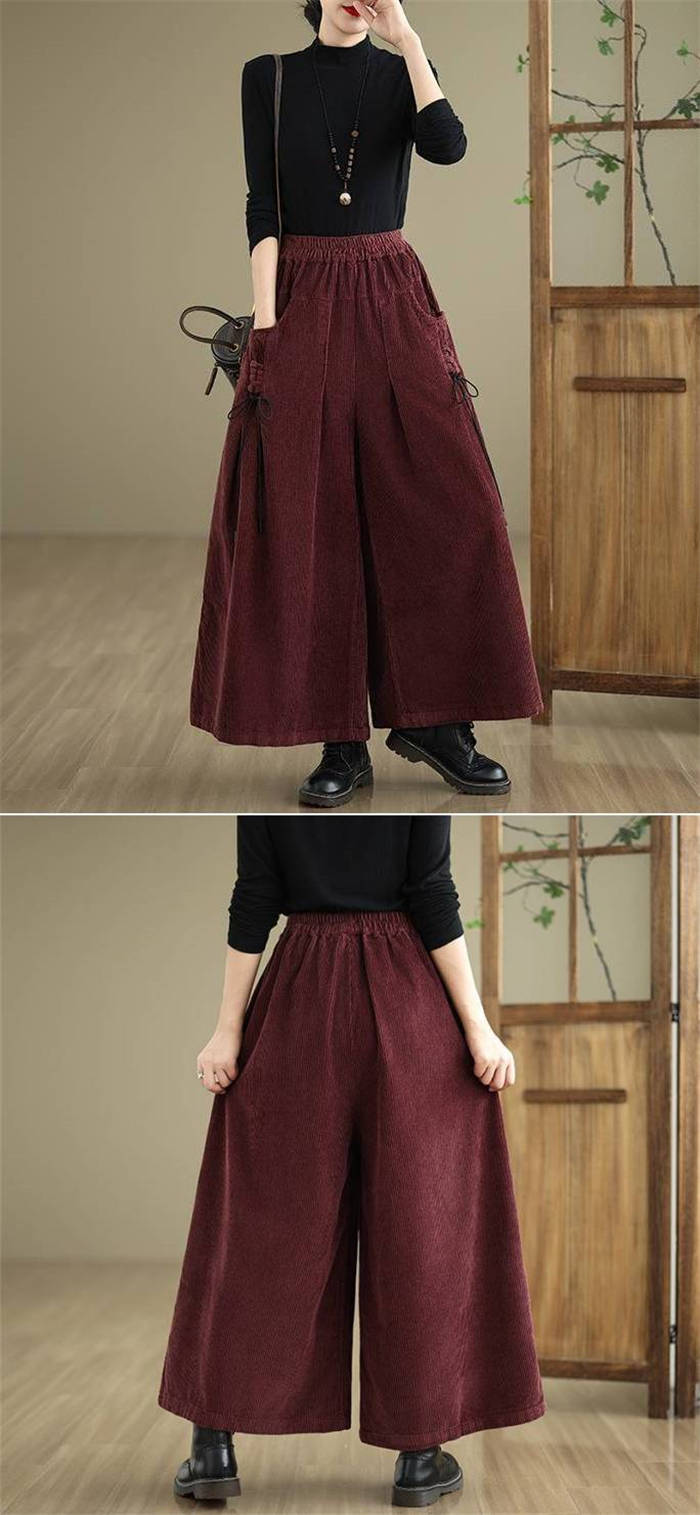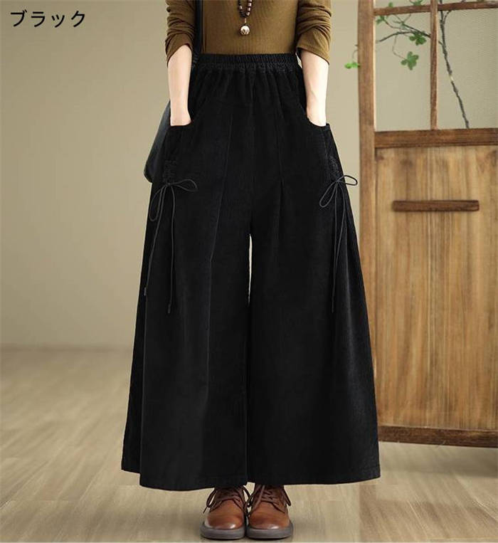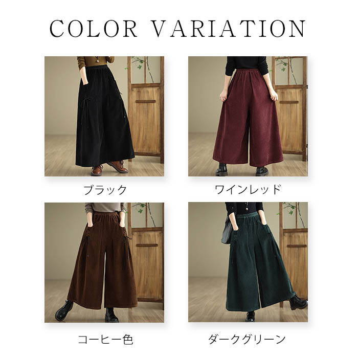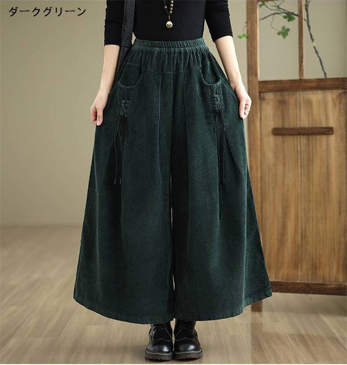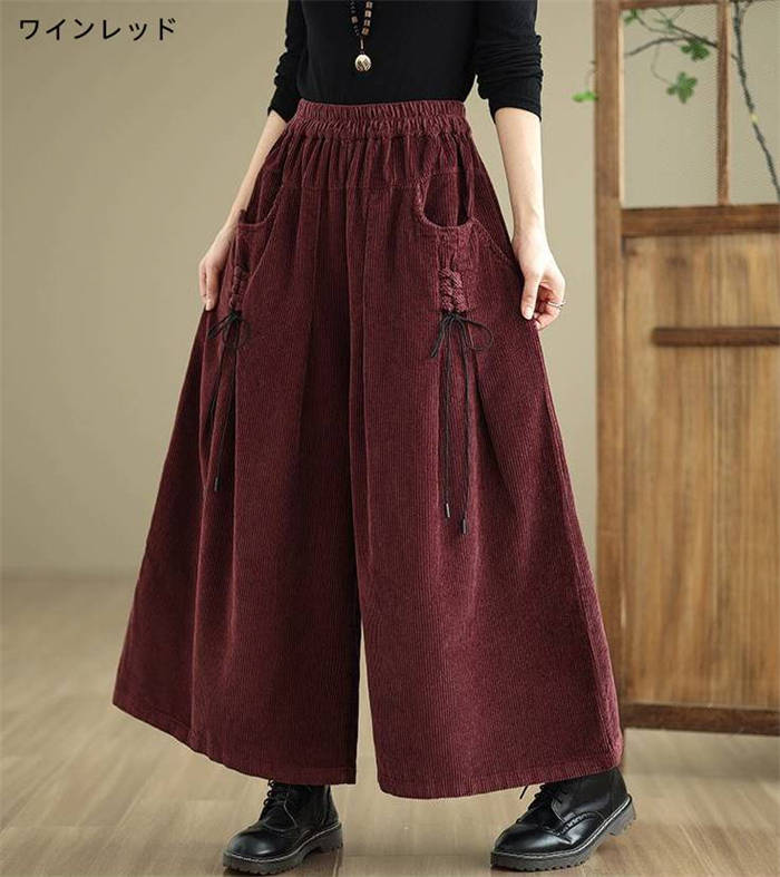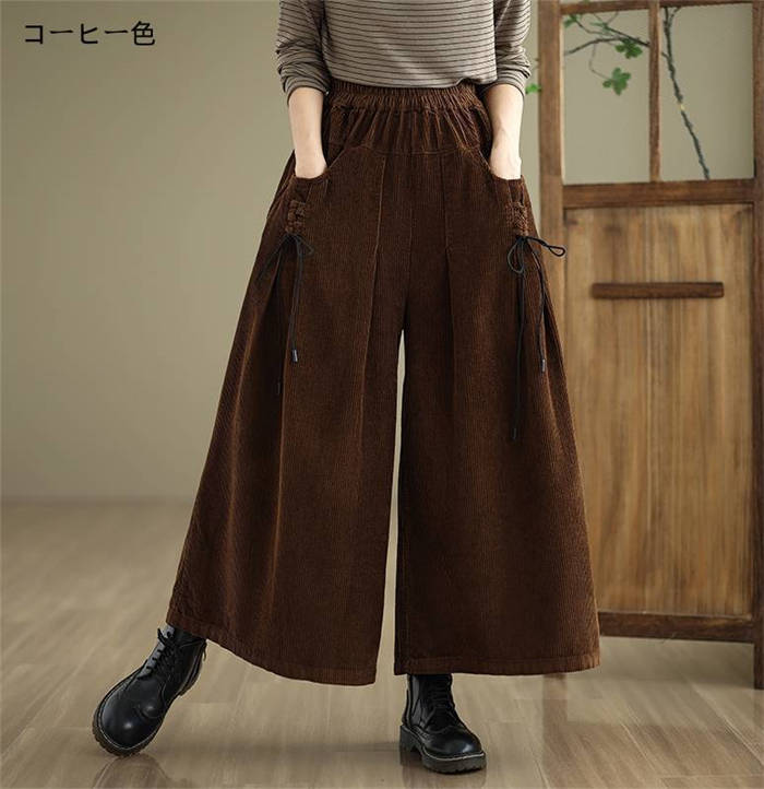 コーデュロイ ワイド パンツ レディー レディースファッション 新登場! ブラック ワインレッド コーヒー色 ダークグリーン M L XL 2XL