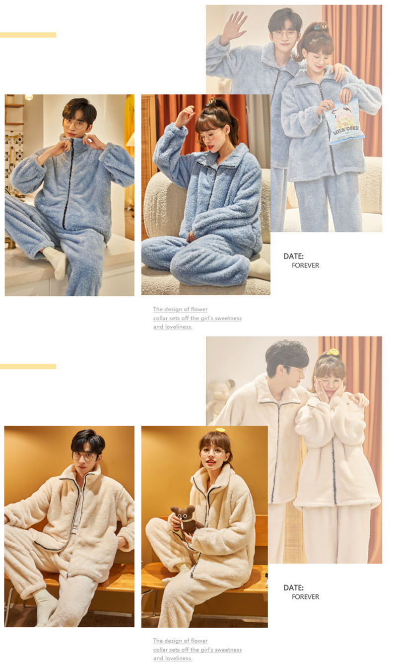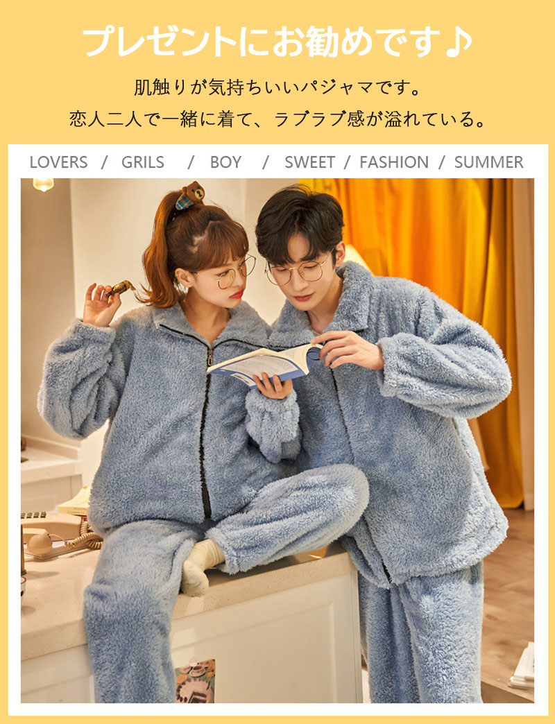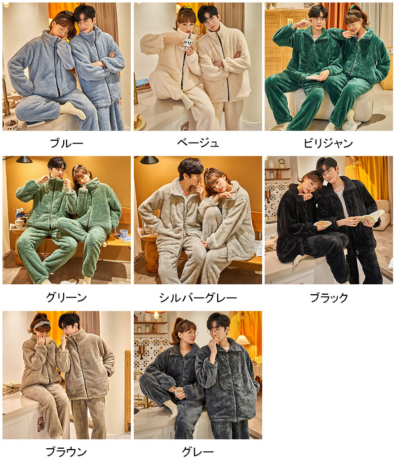 ペアパジャマ モコモコ パジャマ ペア 女M 女L 女XL 女XXL 男L 男XL 男XXL 男XXXL ブルー ベージュ ビリジャン グリーン シルバーグレー ブラック ブラウン グレー