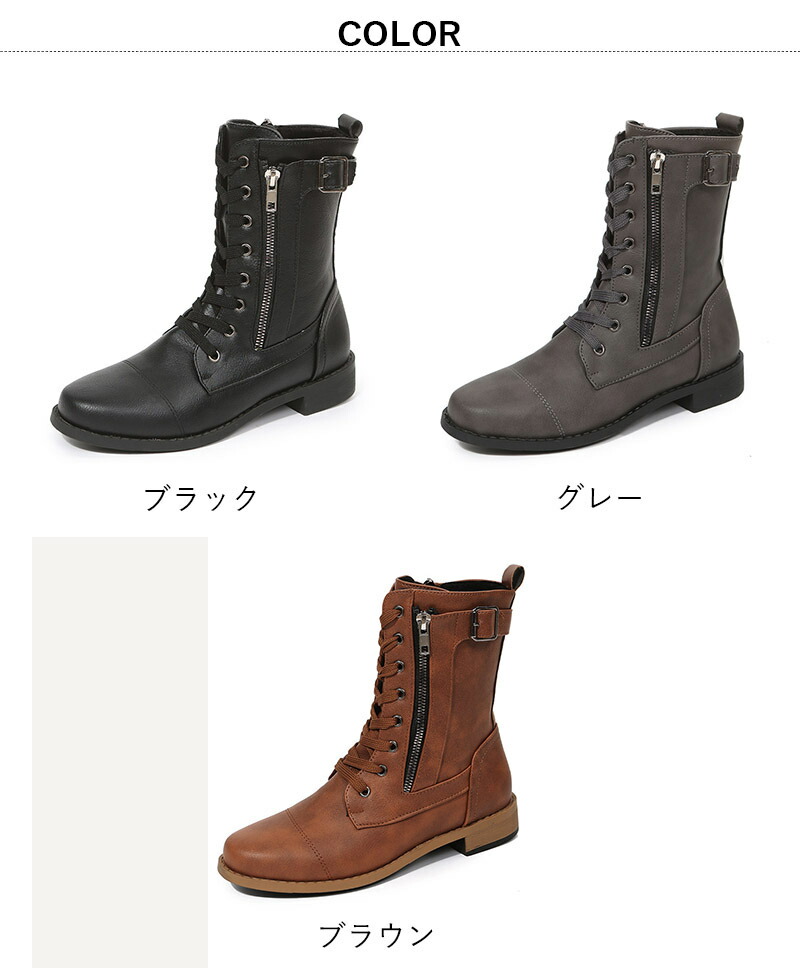 ローヒール レースアップショートブーツ 靴 新登場! ブラック ブラウン グレー 35(22.5cm) 36(23.0cm) 37(23.5cm) 38(24.0cm) 39(24.5cm) 40(25.0cm) 41(25.5cm) 42(26.0cm) 43(26.5cm)