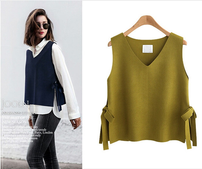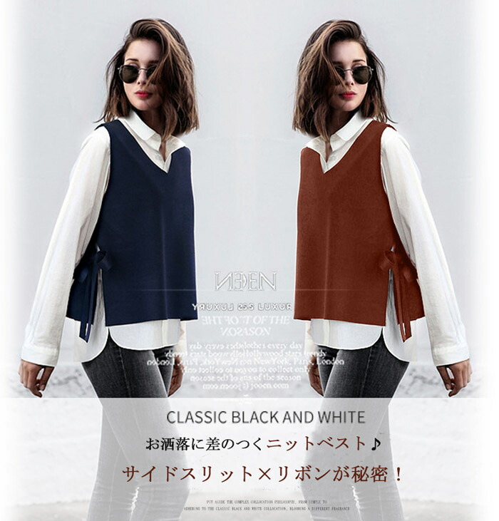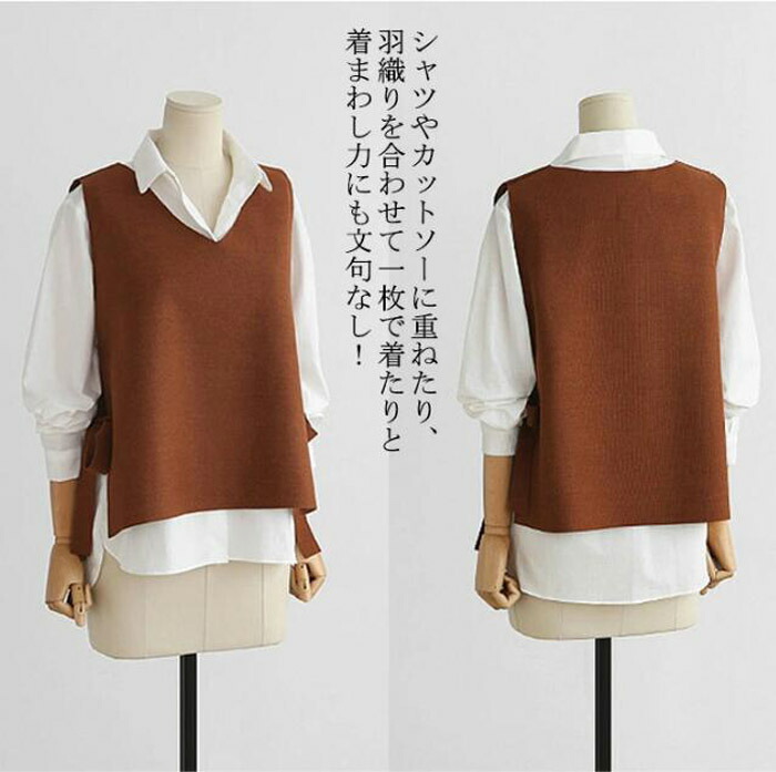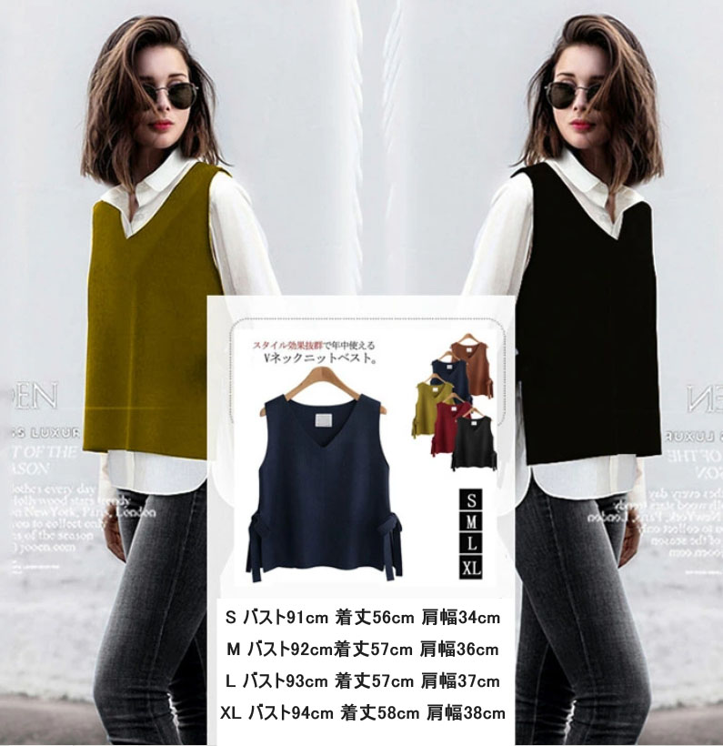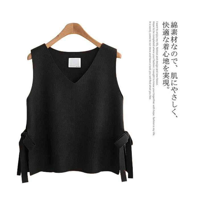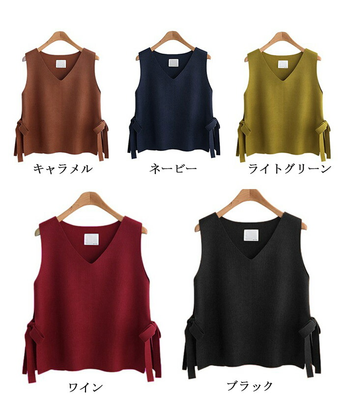 サイドスリット×リボンデザイン S M トップス ベスト 早い者勝ち ブラック ワイン キャラメル ライトグリーン ネービー S M L XL