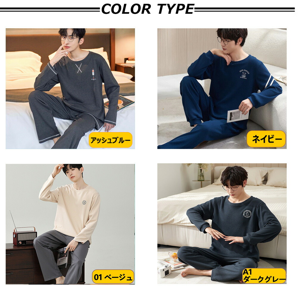 パジャマ メンズ 薄手 長袖 綿 秋用 インナー 下着 ナイトウエア 続々入荷中 ネイビー 01 グレー 02 グレー 04 グレー A1 グレー A1 ダークグレー A1 ベージュ M L XL 2XL 3XL 4XL 5XL