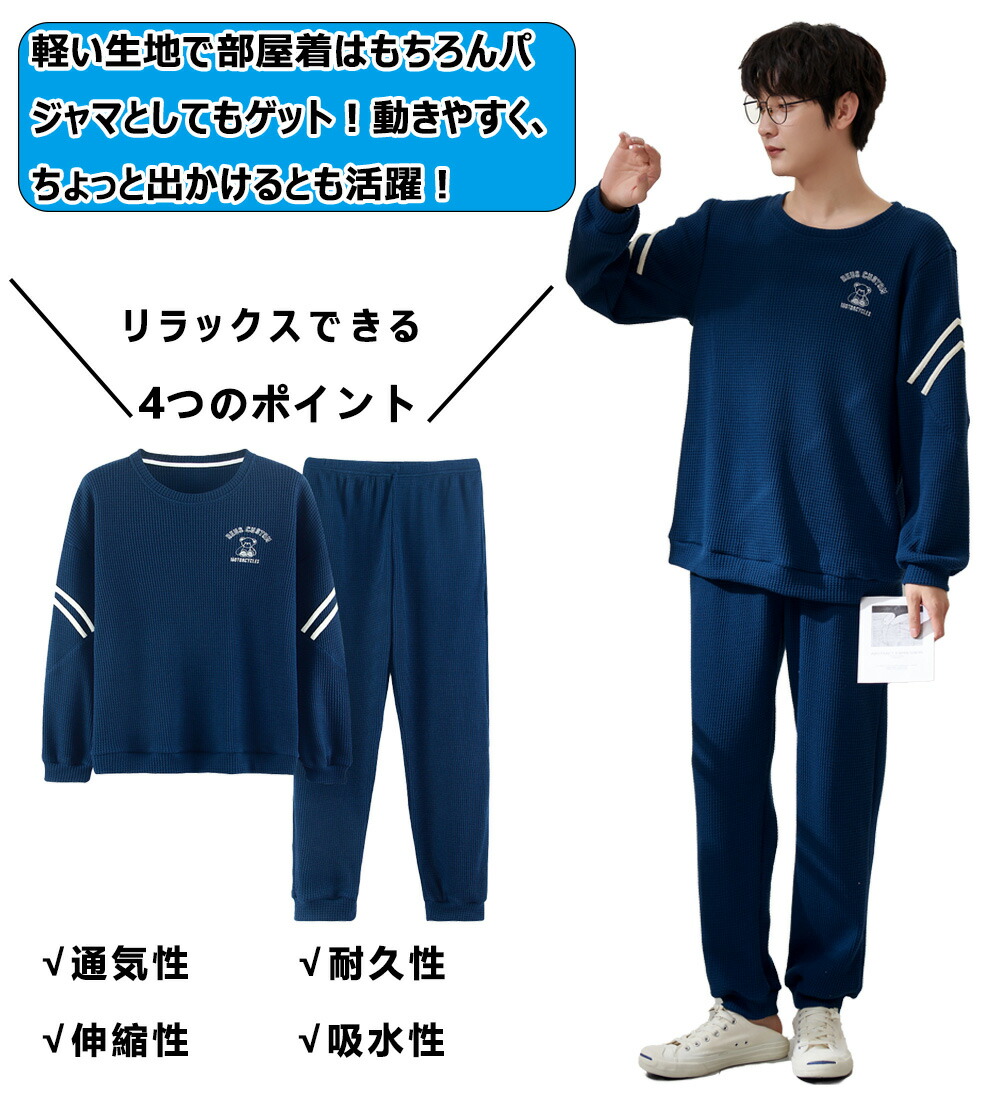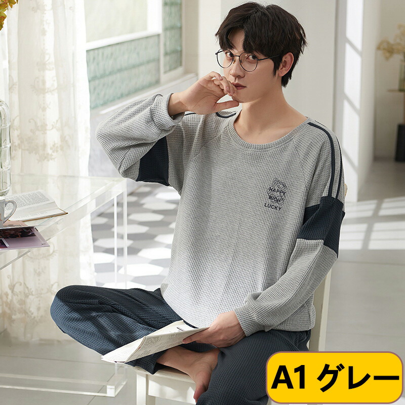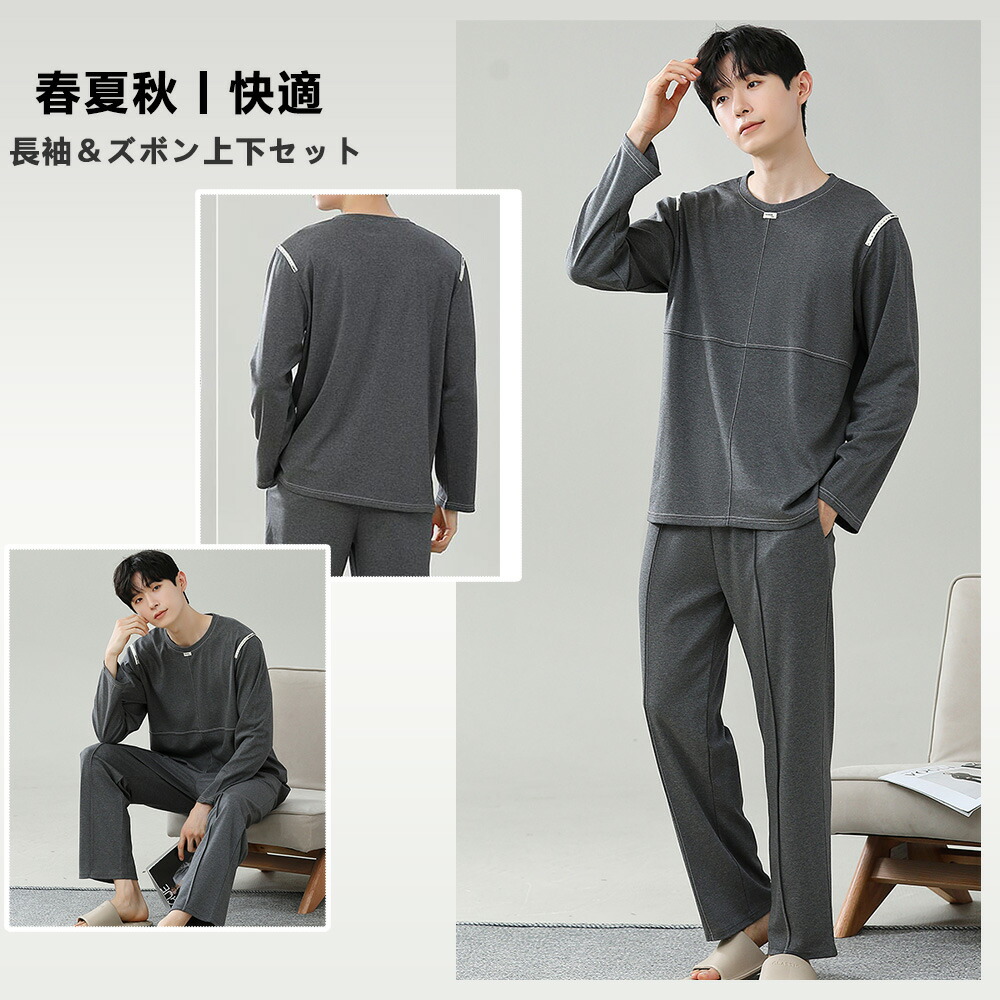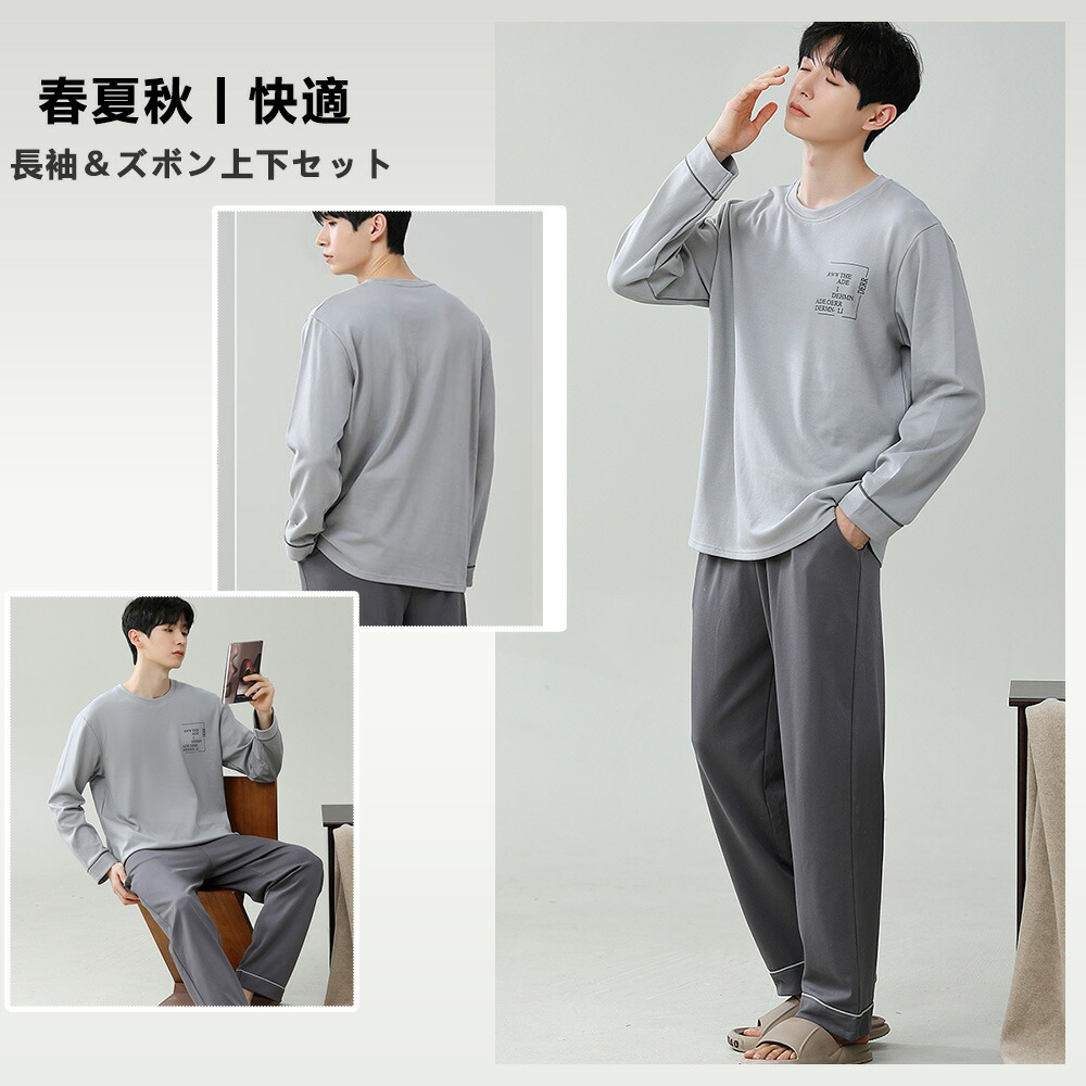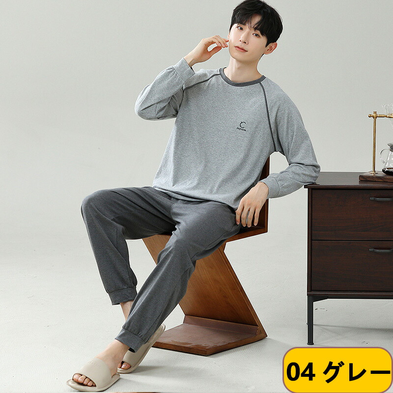 パジャマ メンズ 薄手 長袖 綿 秋用 上下セット 部屋着 寝巻き ルームウェア 丸首 男性用 父の日 パジャマメンズ綿 入院用 家着 おしゃれ 肌に優しい 紳士パジャマ メンズパジャマ 学生 無地