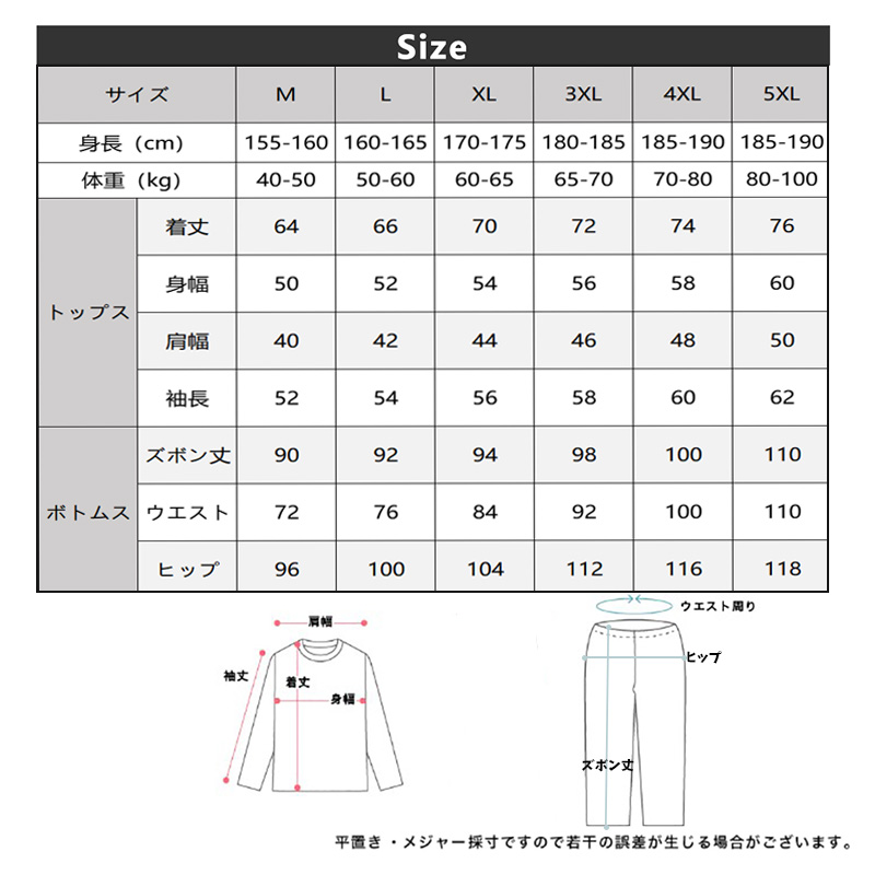 「5XL」ヒップ116cm ズボン丈103cm 股上36cm