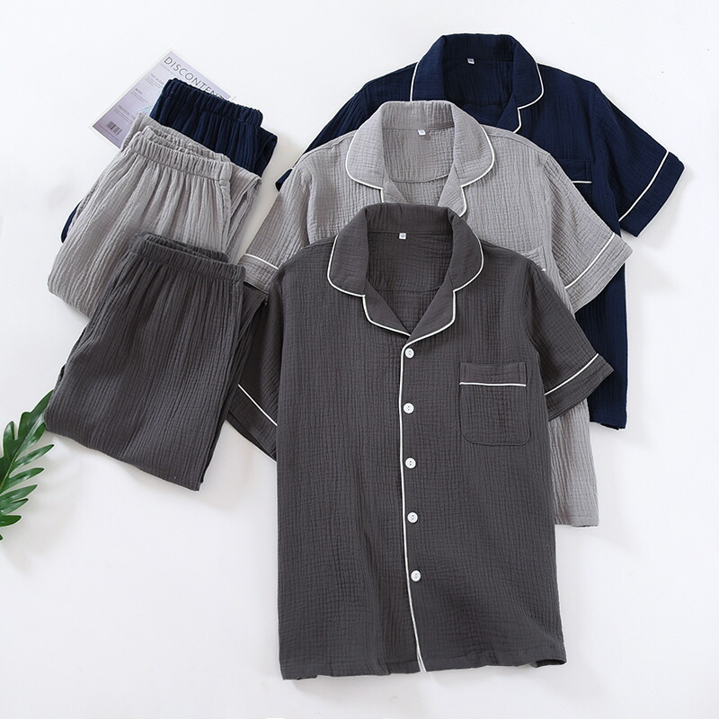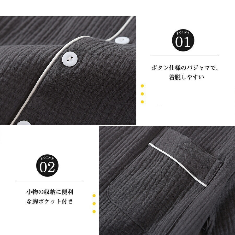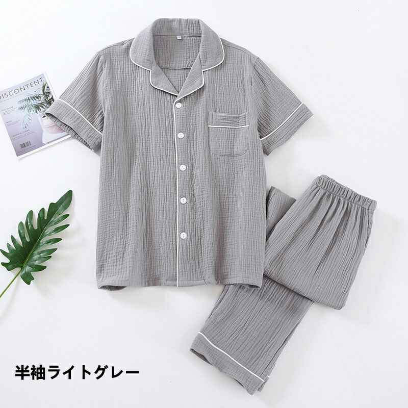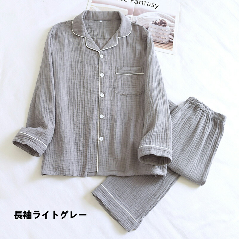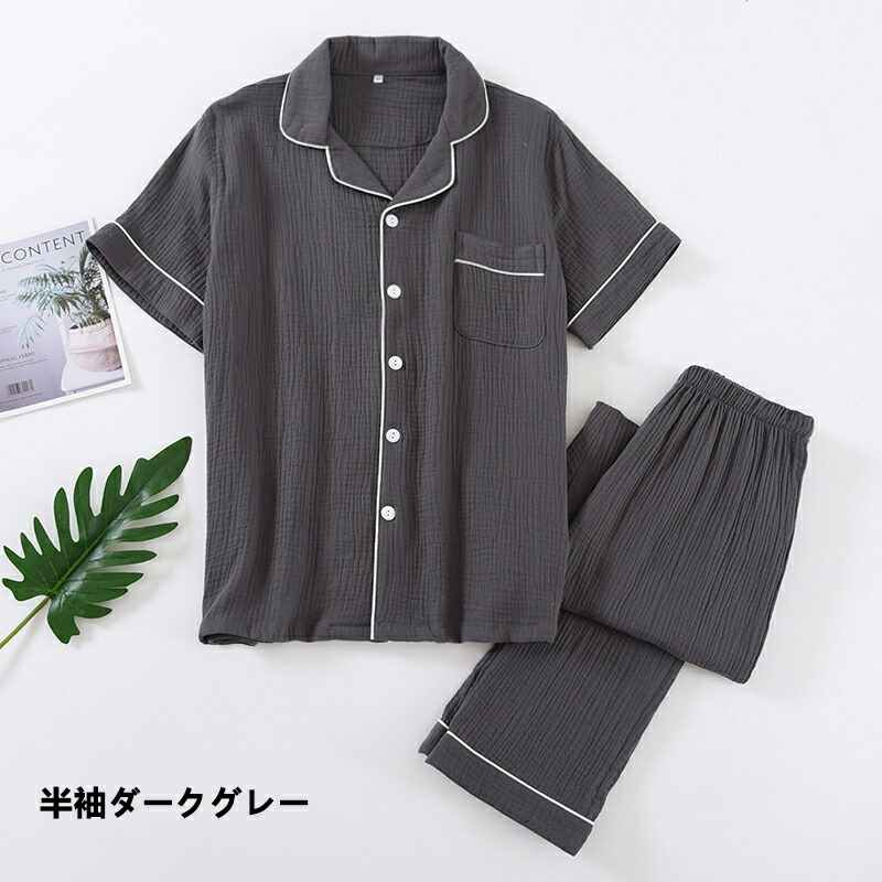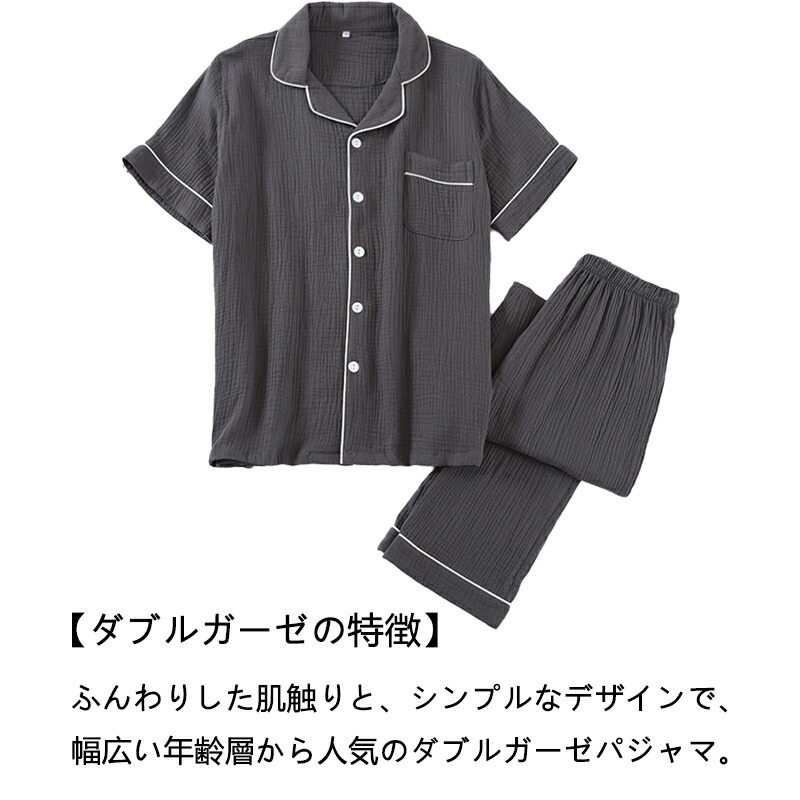 ダブルガーゼ パジャマ メンズ 100 インナー 下着 ナイトウエア 続々入荷中 長袖ネイビー 長袖ダークグレー 長袖ライトグレー 半袖ネイビー 半袖ダークグレー 半袖ライトグレー M L XL
