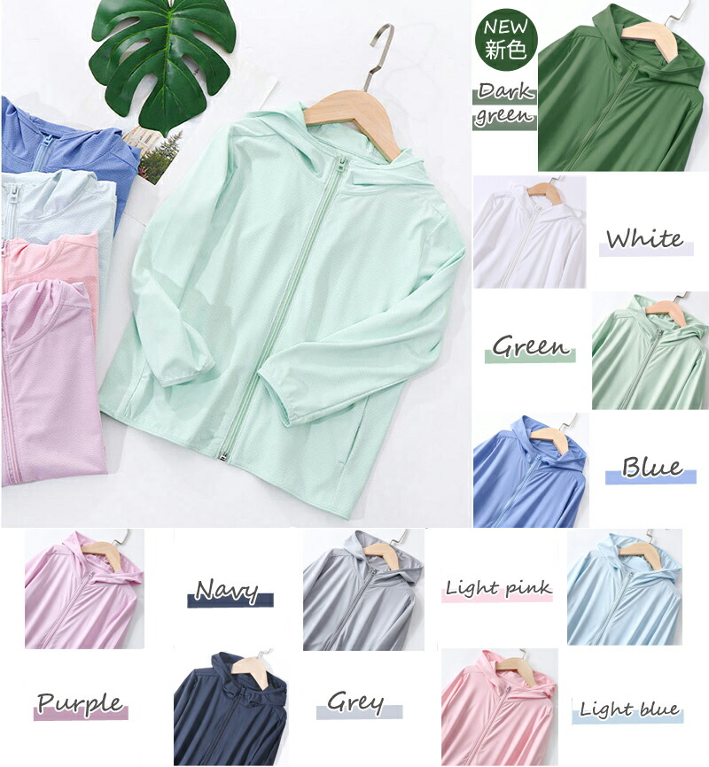 高評価UVカット98.9% パーカー キッズ トップス パーカー 続々入荷中 ライトピンク ブルー パープル グレー グリーン ライトブルー ホワイト ネイビー 110cm 120cm 130cm 140cm 150cm 160cm 170cm 180cm