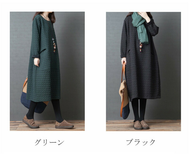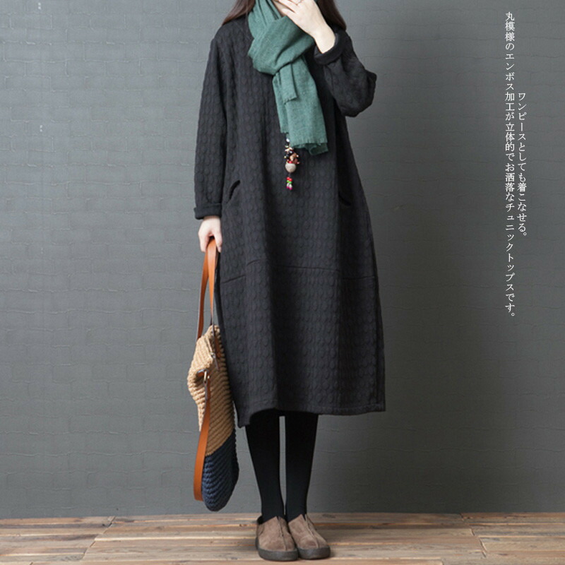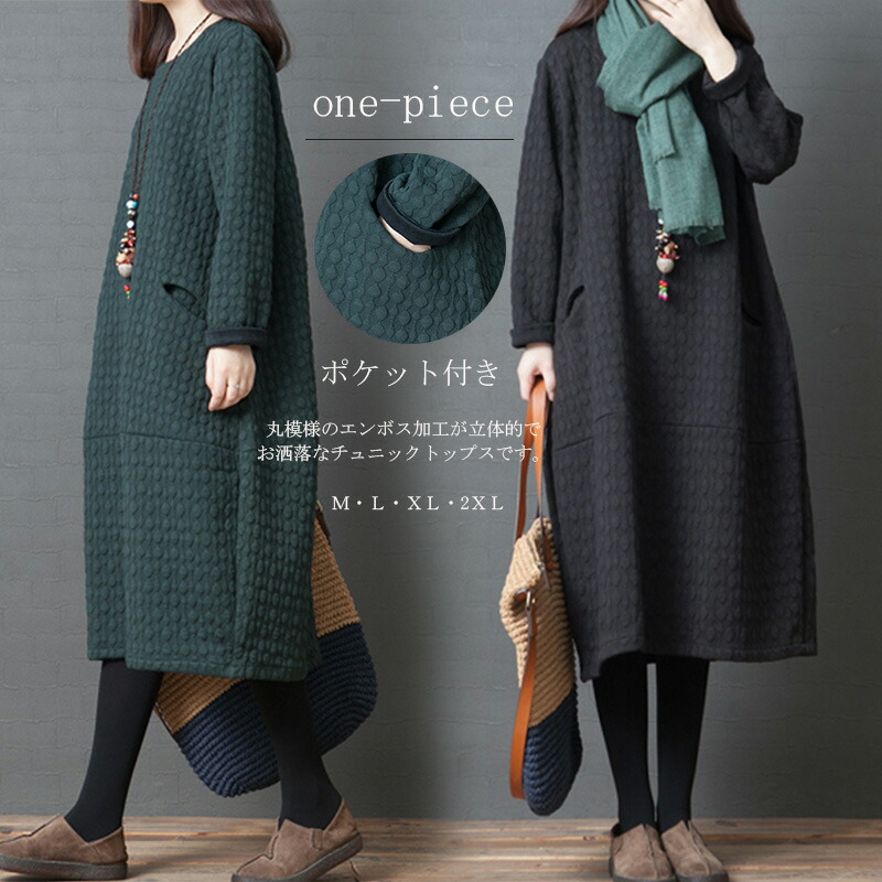 ワンピース チュニック レディース 秋 ワンピース 続々登場 ブラック グリーン M L XL 2XL