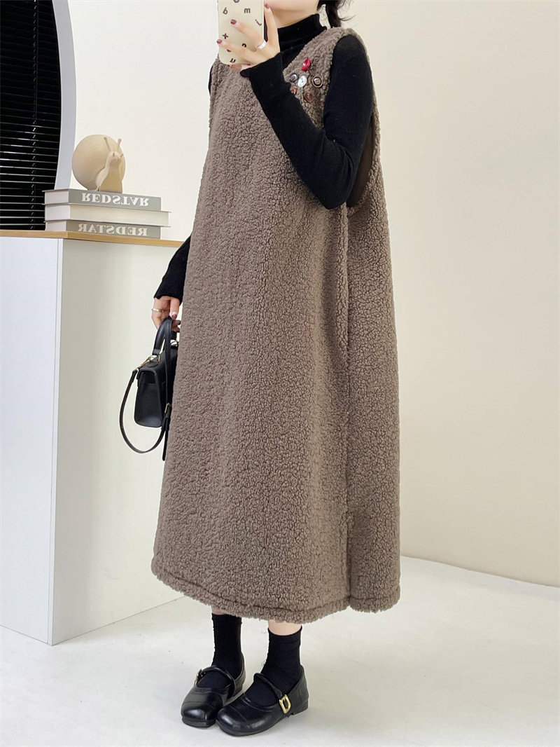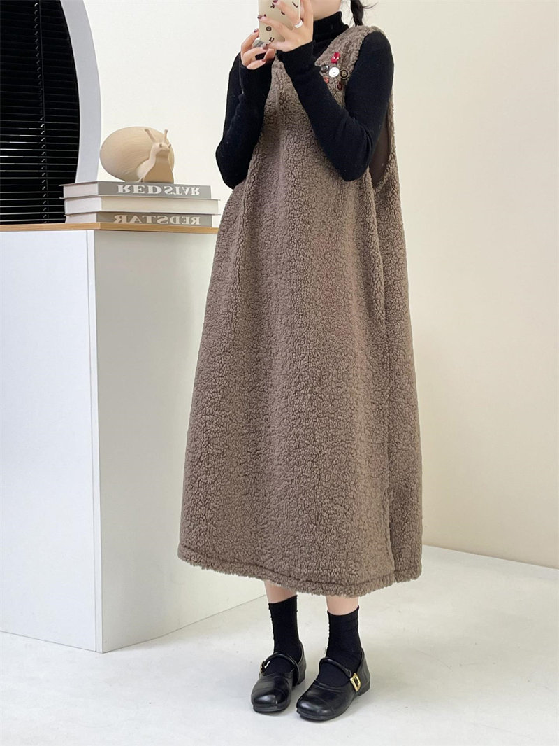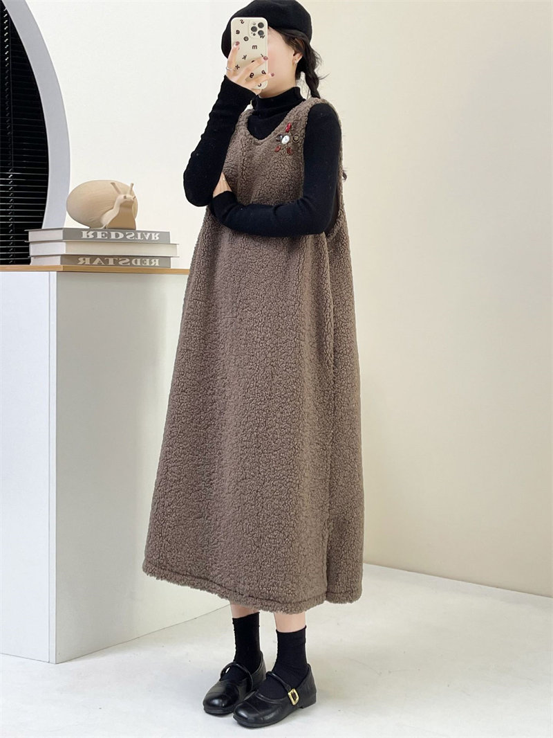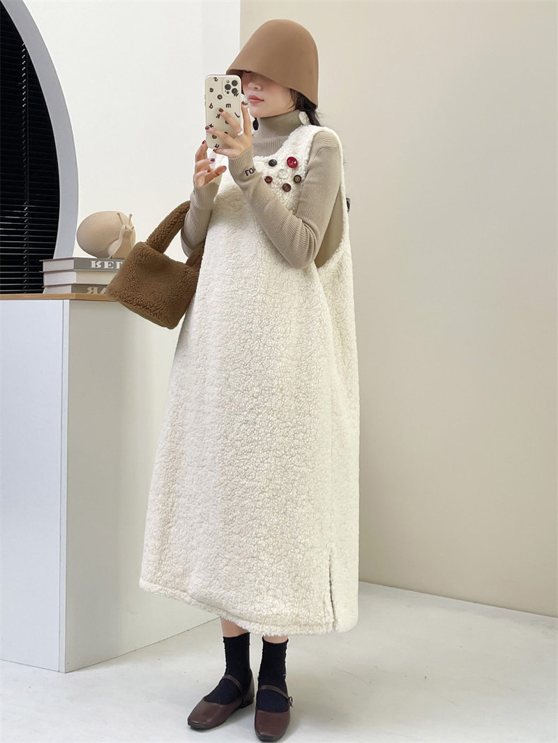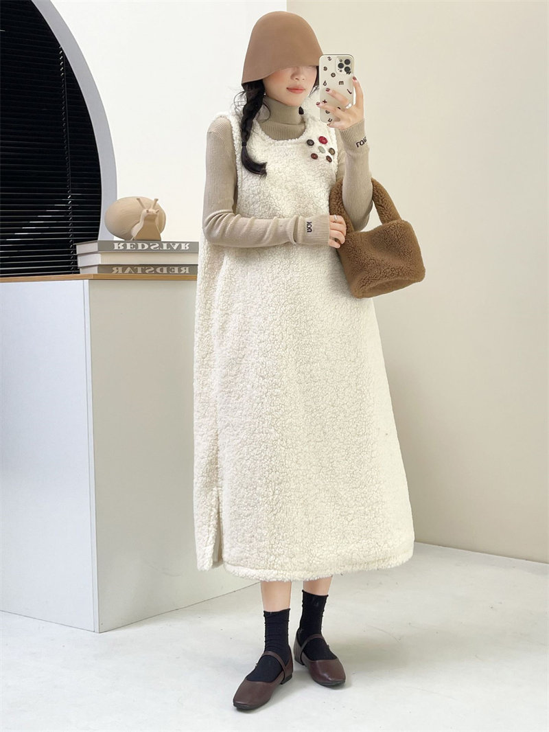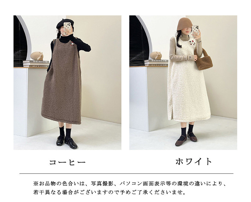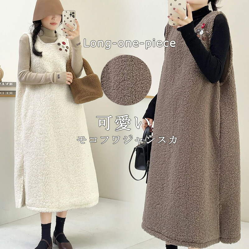 ワンピース ジャンスカ 秋冬 もこもこ ホワイト コーヒー