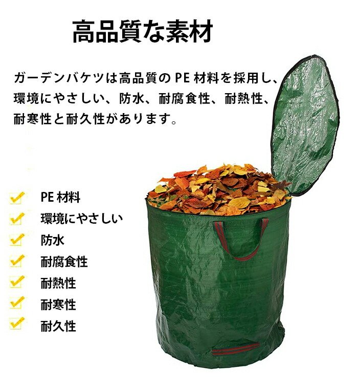 検索キーワード:ガーデンバケツ 折り畳み バッグ ガーデン120L/ 272L/300L 落ち葉 ダストバッグ 収穫袋 収穫バッグ 落ち葉袋 枯れ葉袋 収草袋 大型庭用袋 自立式 自立 大容量 折り畳み ハンドル付き お庭の清掃 ごみ落ち葉の処理用 芝生 草刈り 集草 剪定 コンポスト 堆肥 園芸 2pcs 収納専用バッグ 雑貨 生活雑貨 お庭の清掃 園芸収納袋 集草バッグ 廃棄物 ごみ 植物グラスバッグ 大型庭用袋 再利用可能