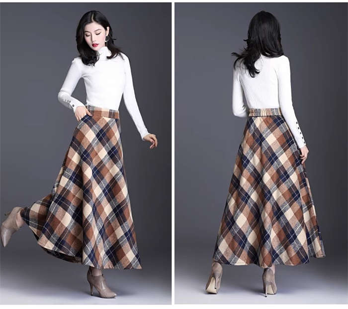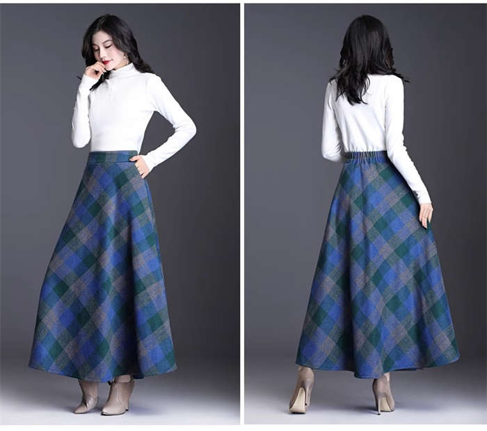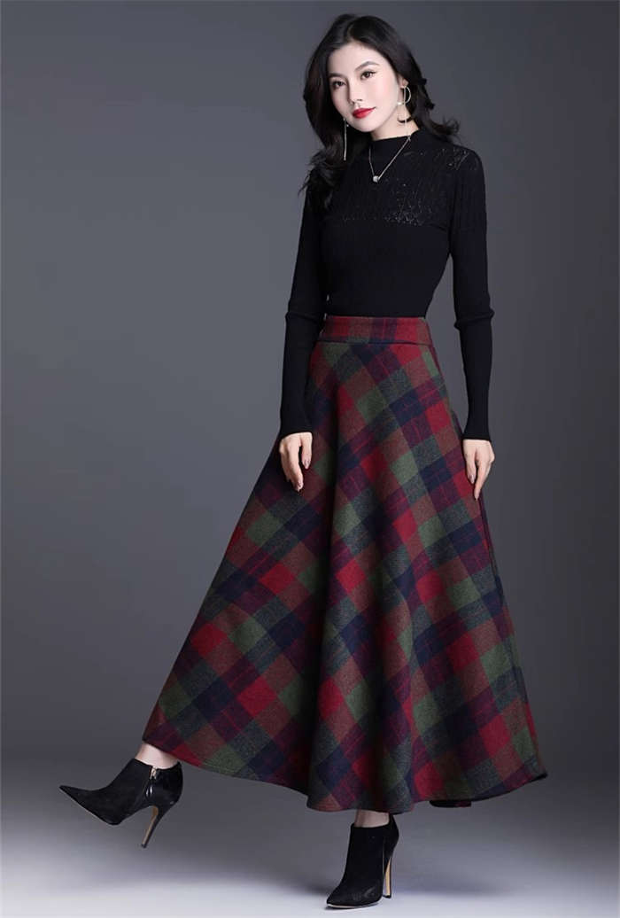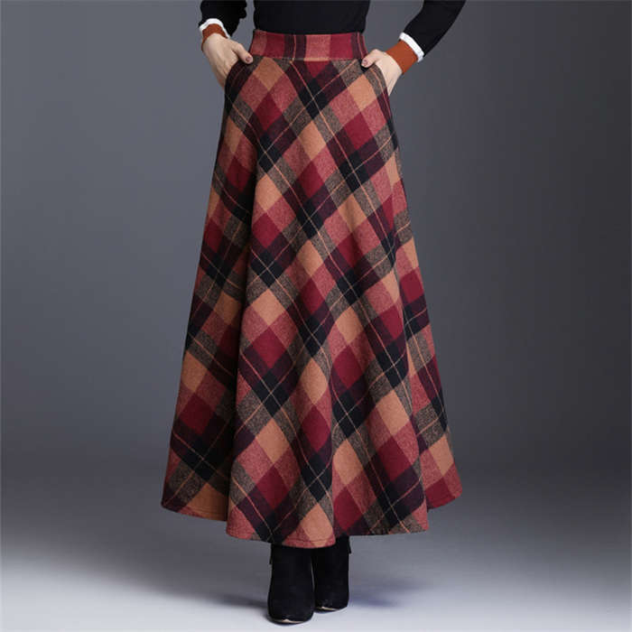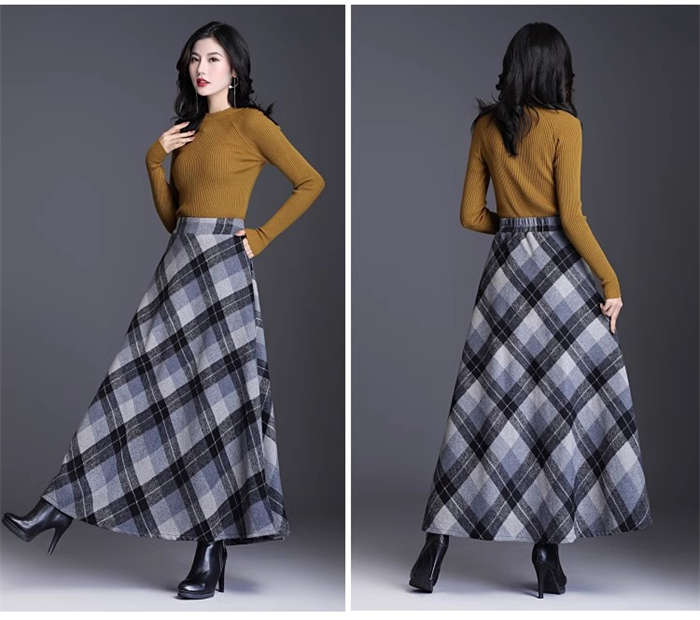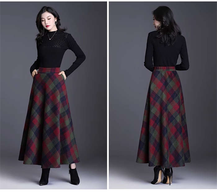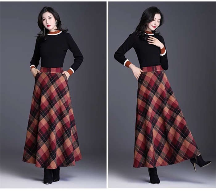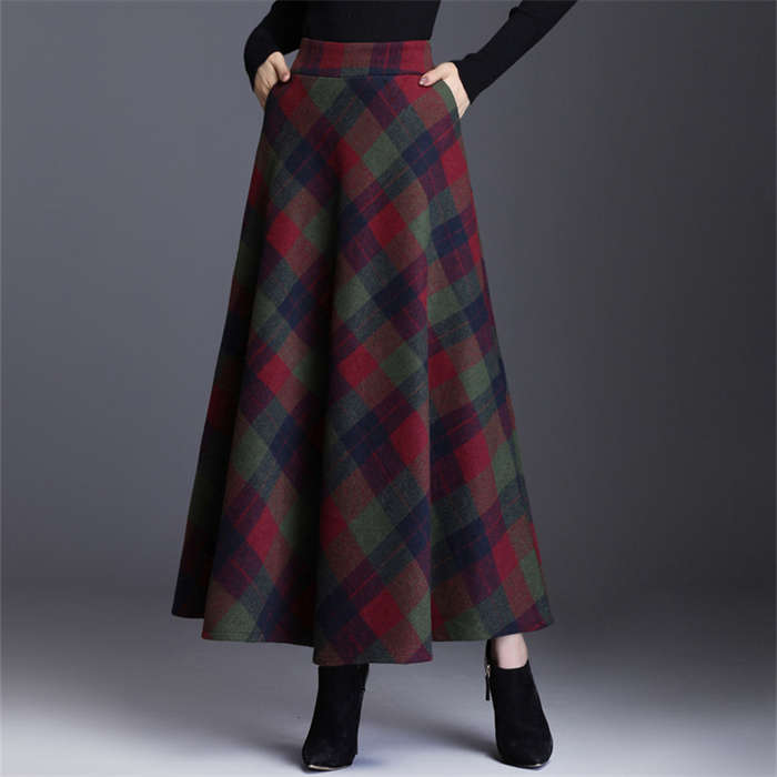 ロングスカート 秋冬 チェック柄 タイ レディースファッション 人気 グリーンチェック レッドチェック グレーチェック ブラウンチエック ブルーチェック S M L XL 2XL 3XL