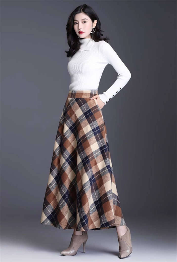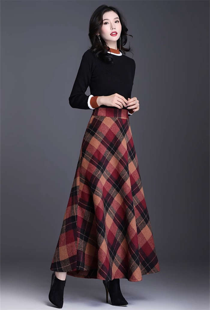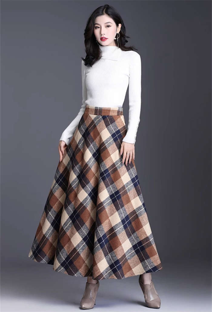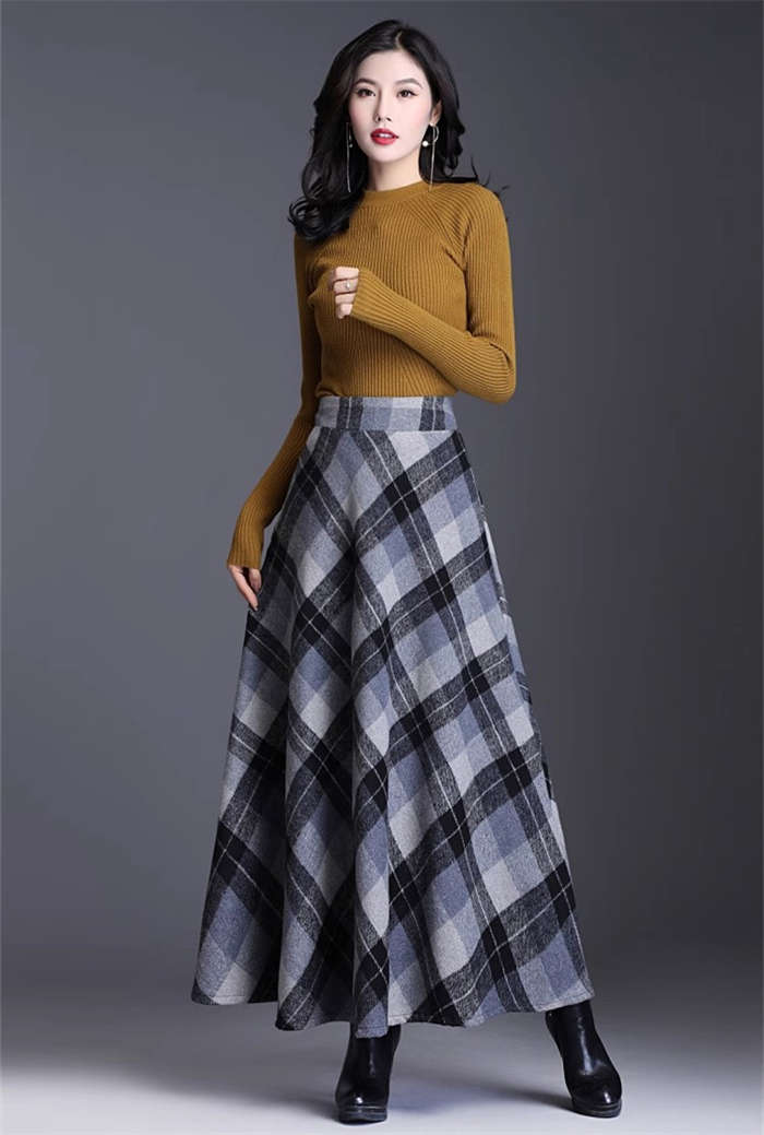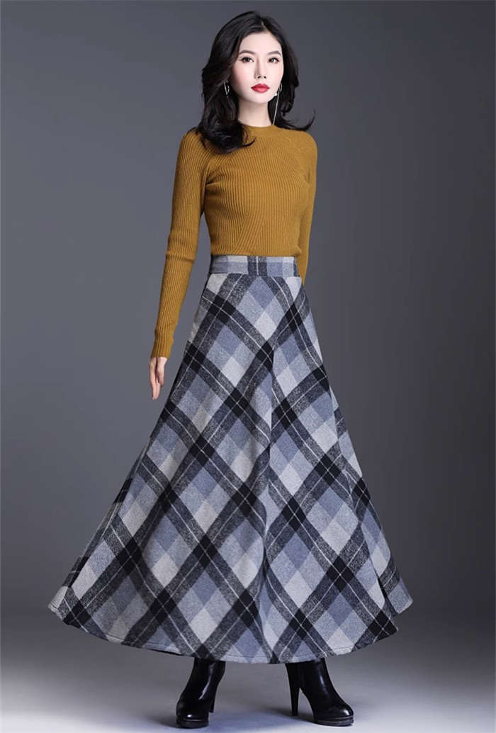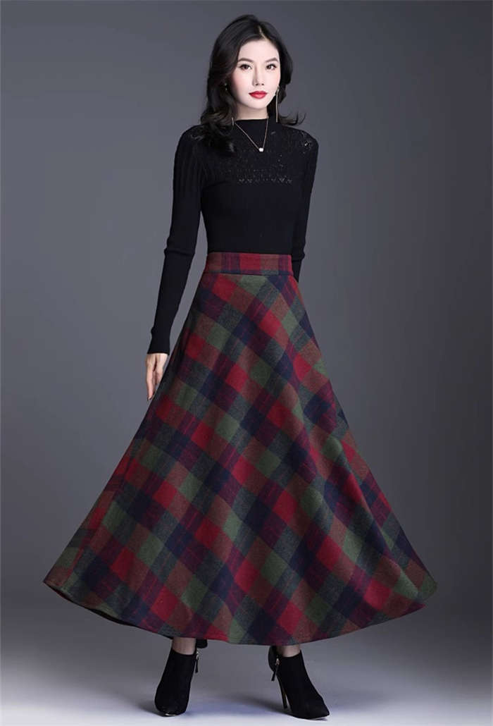 ロングスカート 秋冬 チェック柄 タイ レディースファッション 人気 グリーンチェック レッドチェック グレーチェック ブラウンチエック ブルーチェック S M L XL 2XL 3XL