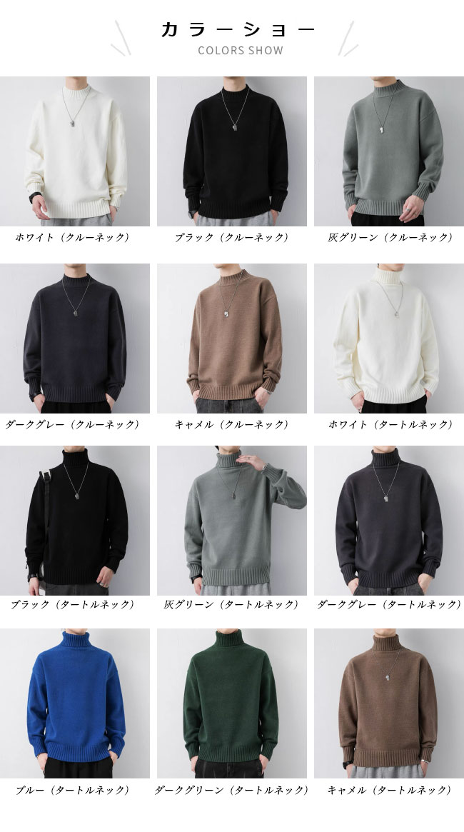 ニットセーター 厚手 メンズ クルーネ メンズファッション 豊富 M L XL 2XL 3XL ホワイト(クルーネック) ブラック(クルーネック) 灰グリーン(クルーネック) ダークグレー(クルーネック) キャメル(クルーネック) ホワイト(タートルネック) ブラック(タートルネック) 灰グリーン(タートルネック) ダークグレー(タートルネック) ブルー(タートルネック) ダークグリーン(タートルネック) キャメル(タートルネック)