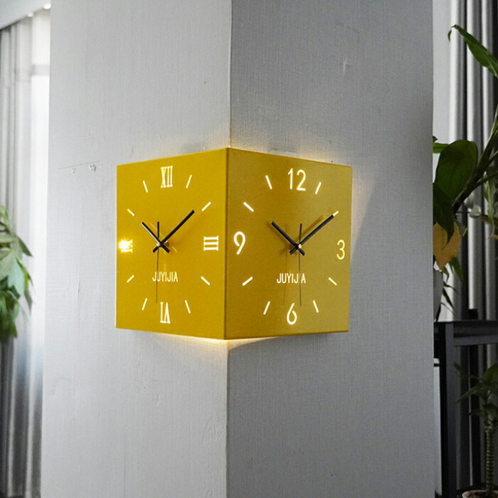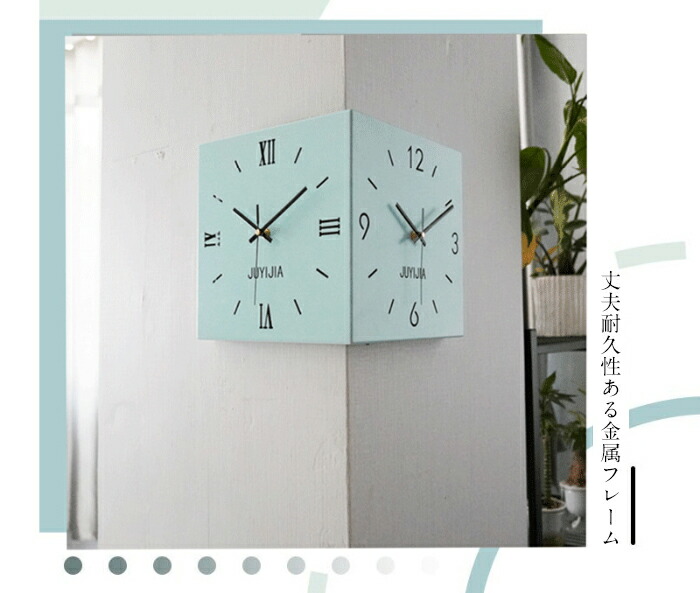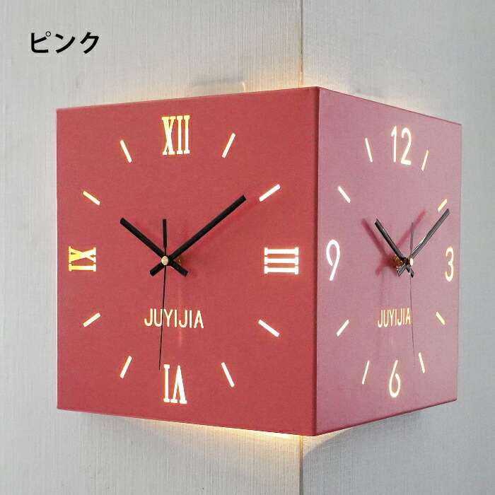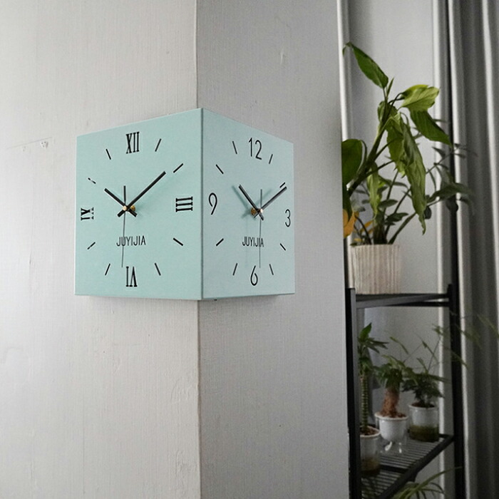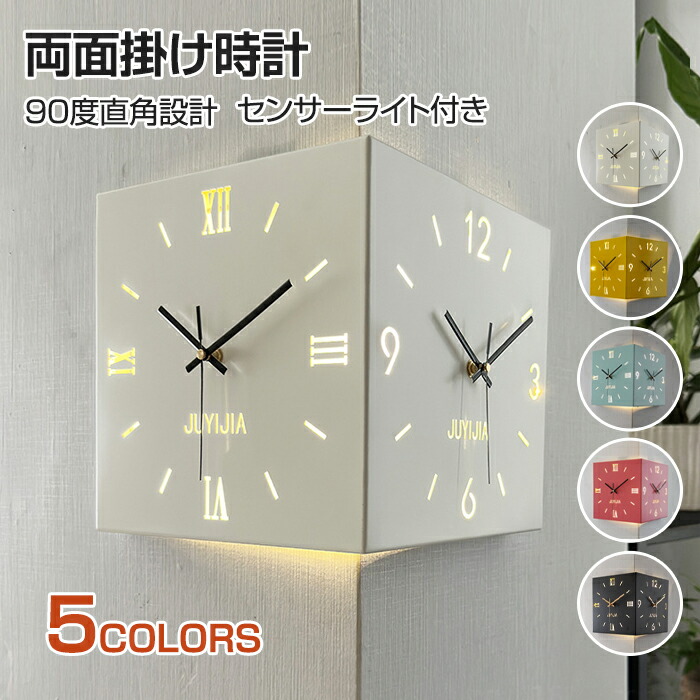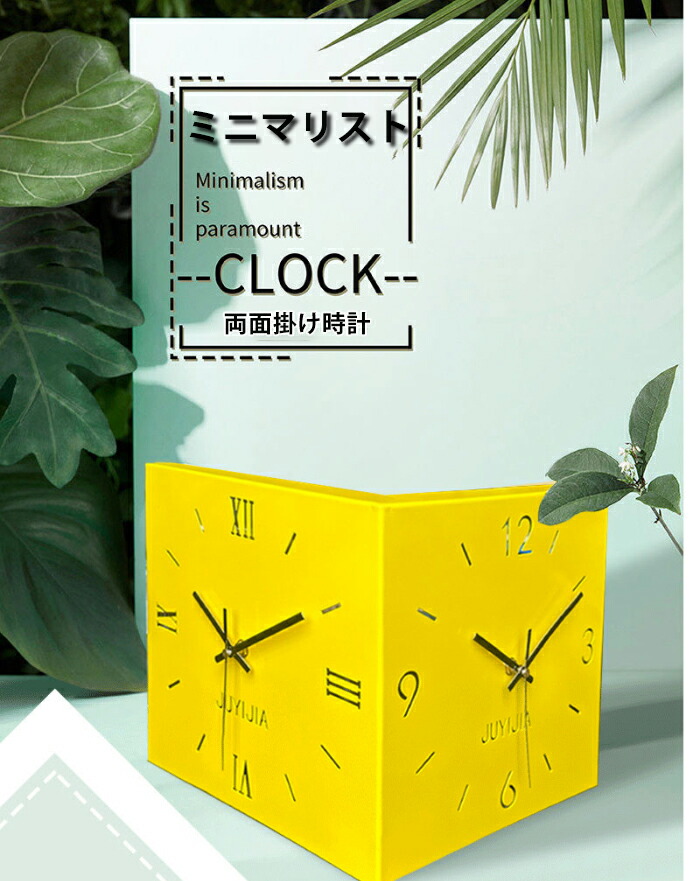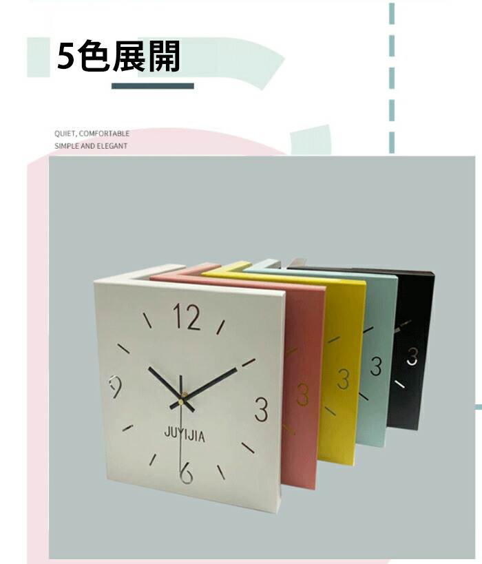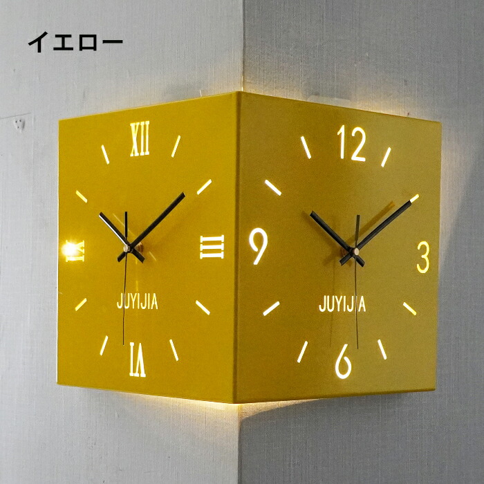 掛け時計 おしゃれ 両面コーナー サイ ホワイト イエロー ブルー ピンク ブラック