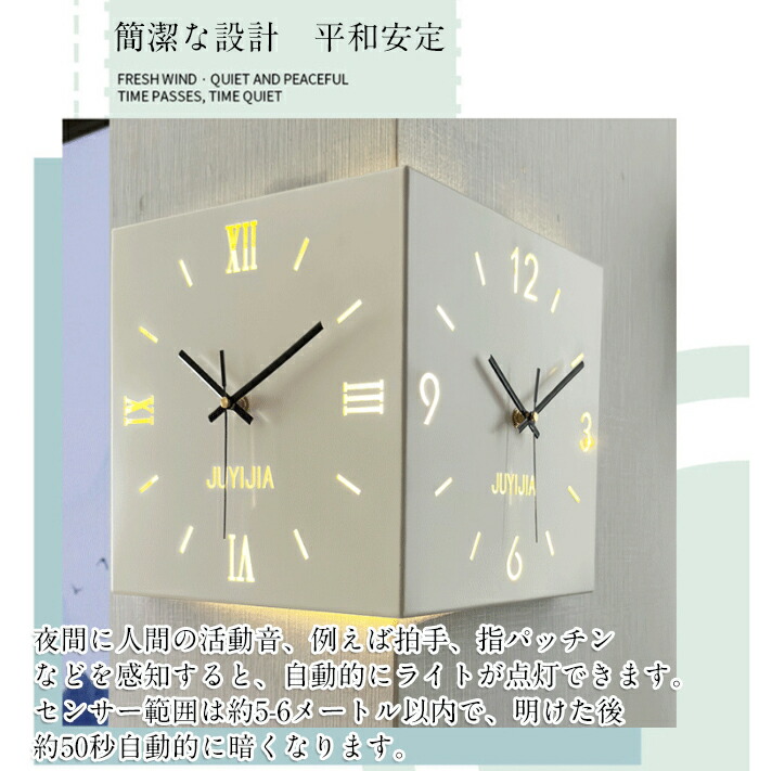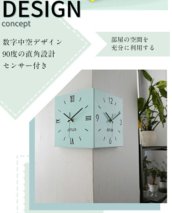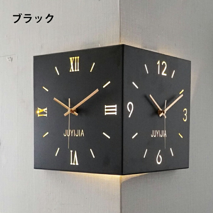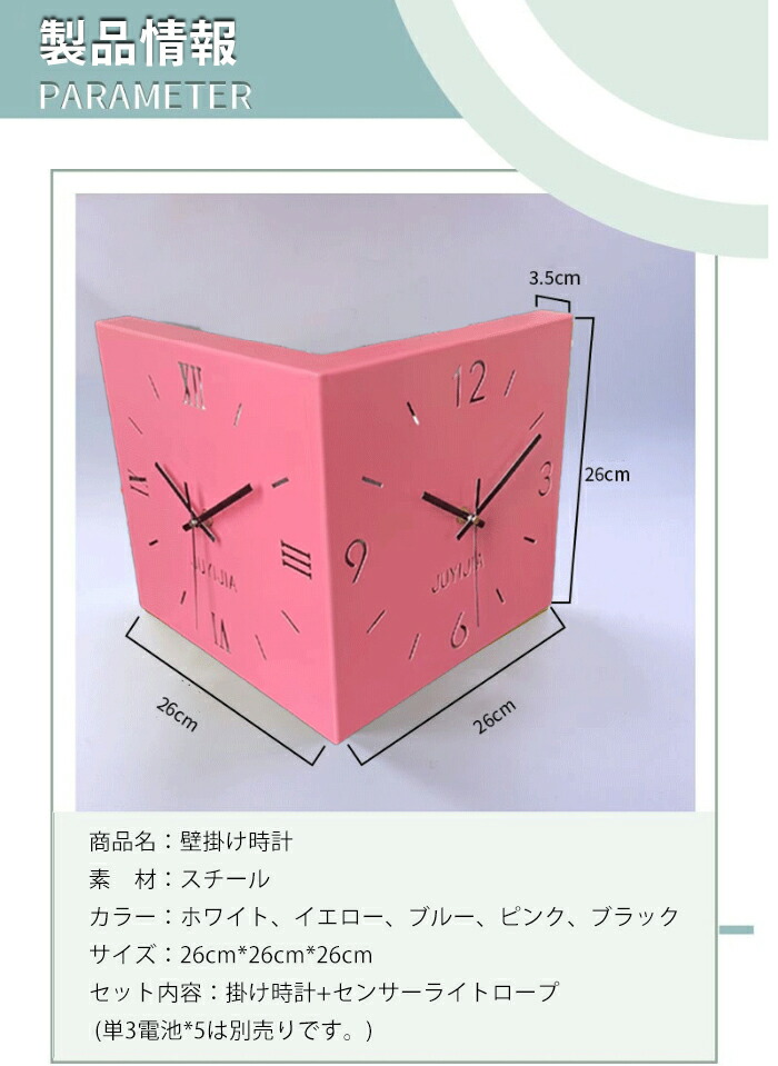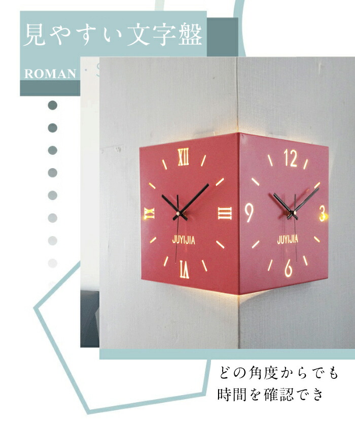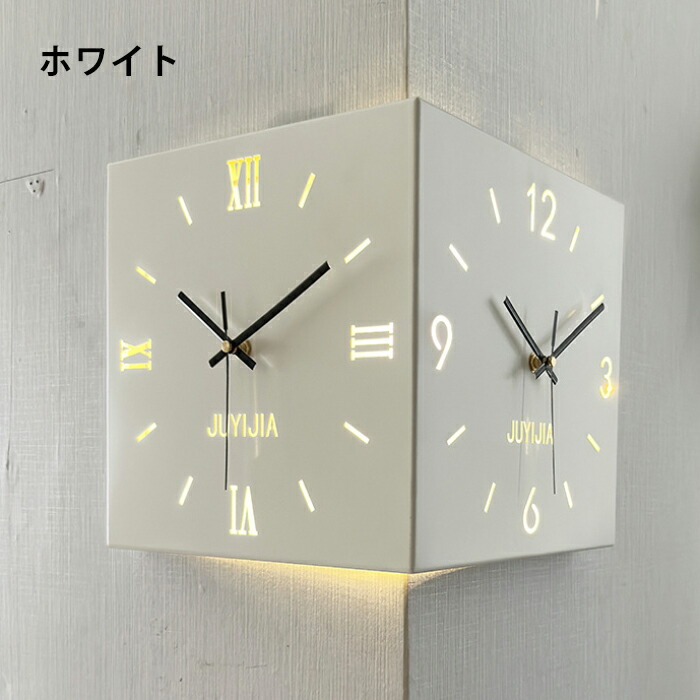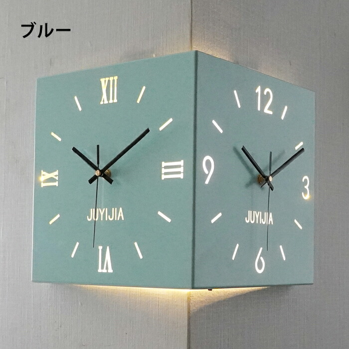 掛け時計 おしゃれ 両面コーナー サイ ホワイト イエロー ブルー ピンク ブラック