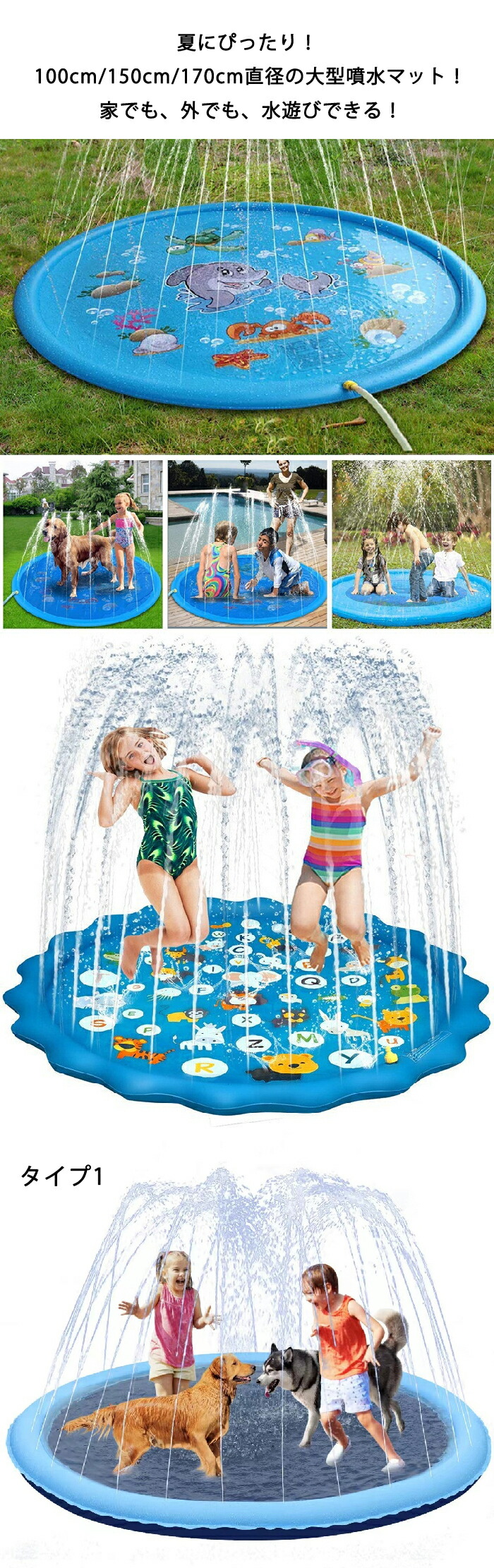 噴水マット 噴水池 水遊び 噴水 ペッ S:直径約100cm M:直径約150cm L:直径約170cm XL:直径約200cm
