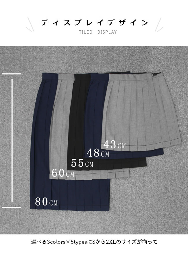 スクールスカート ブラック ネイビー レディースファッション 人気 S M L XL 2XL グレー(43cm) ブラック(43cm) ネイビー(43cm) グレー(48cm) ブラック(48cm) ネイビー(48cm) グレー(55cm) ブラック(55cm) ネイビー(55cm) グレー(60cm) ブラック(60cm) ネイビー(60cm) グレー(80cm) ブラック(80cm) ネイビー(80cm)