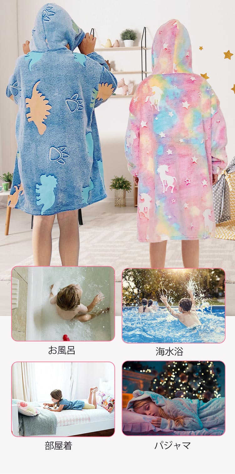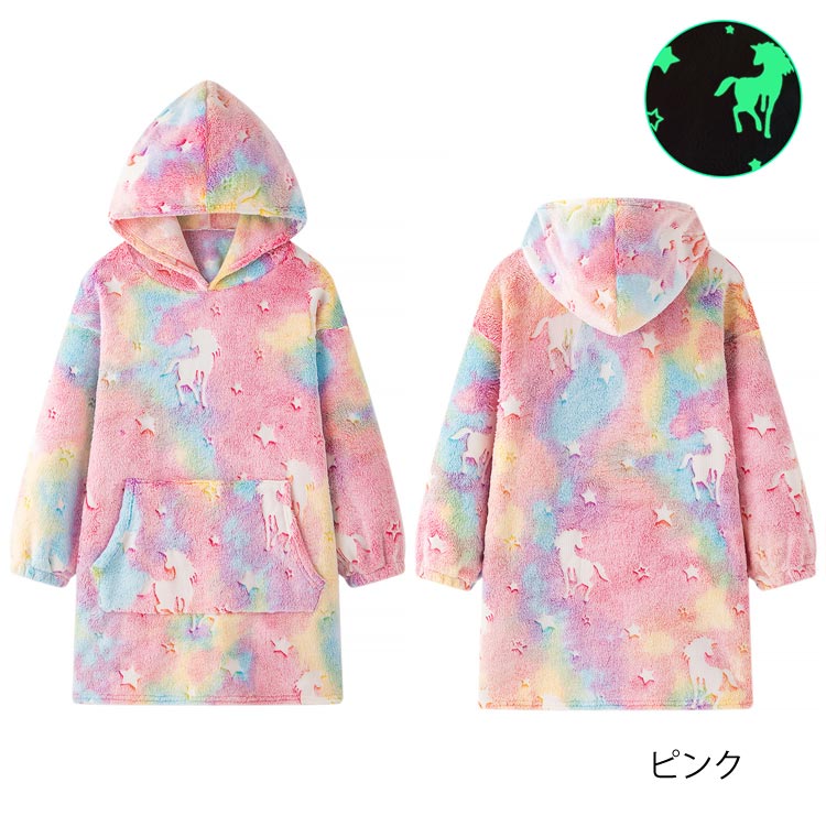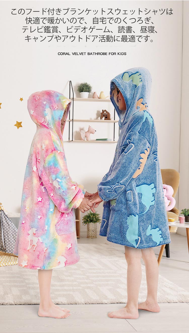 着る毛布 フード付 子供 パジャマ ル 寝具 着る毛布 特集 ピンク パープル 恐竜柄 星空 S M
