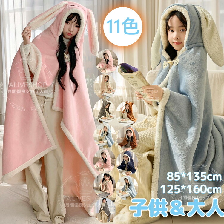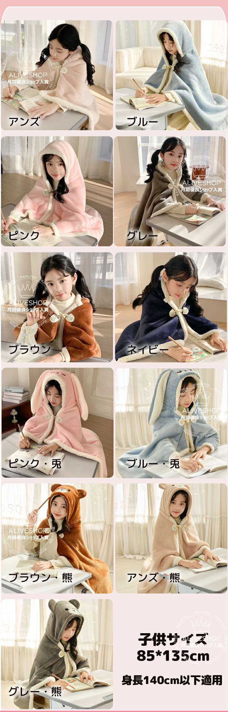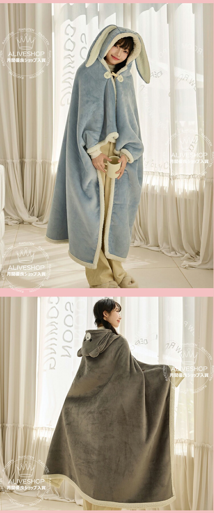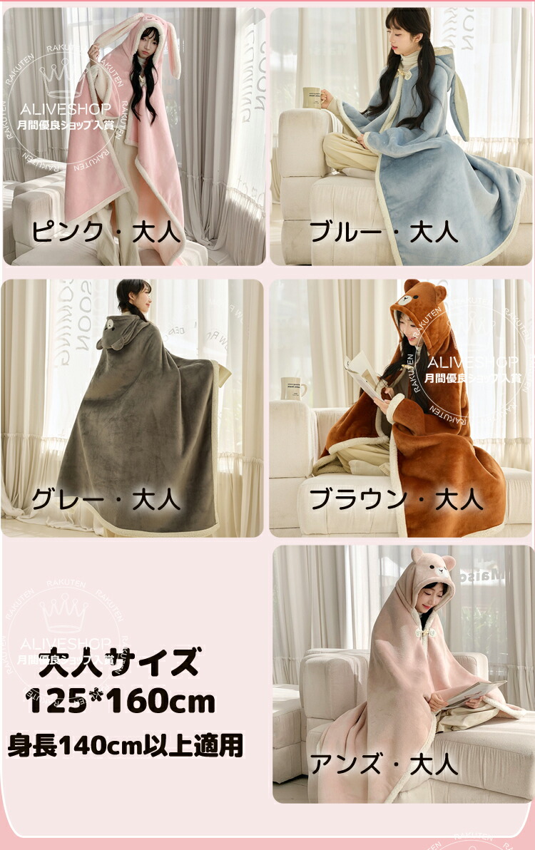 ブランケット マント ふわふわ 着る毛 寝具 着る毛布 通販 アンズ ブルー ピンク グレー ブラウン ネイビー ピンク・兎 ブルー・兎 ブラウン・熊 アンズ・熊 グレー・熊 ピンク・大人 ブルー・大人 グレー・大人 ブラウン・大人 アンズ・大人