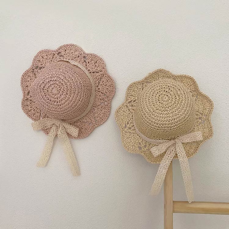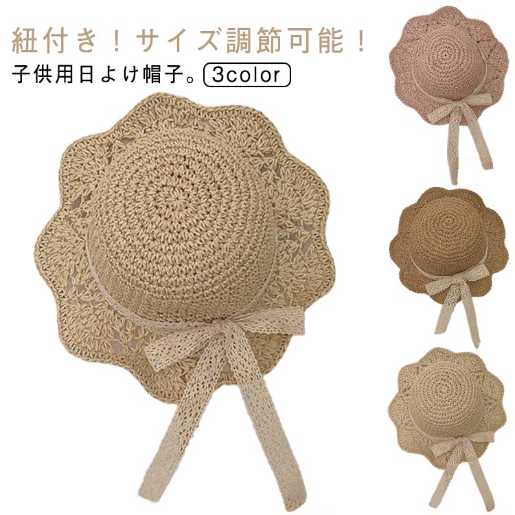 帽子 麦わら帽子 子供用 女の子 男の キッズ 帽子 麦わら帽子 新作 ベージュ ブラウン ピンク 42-48cm(6ヶ月~2歳適応) 48-52cm(2~6歳適応)