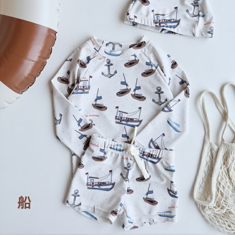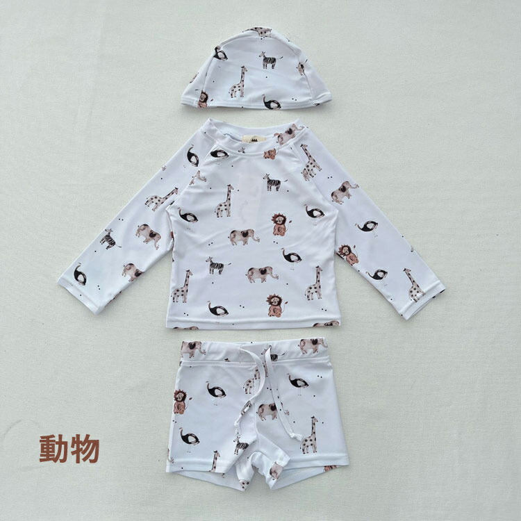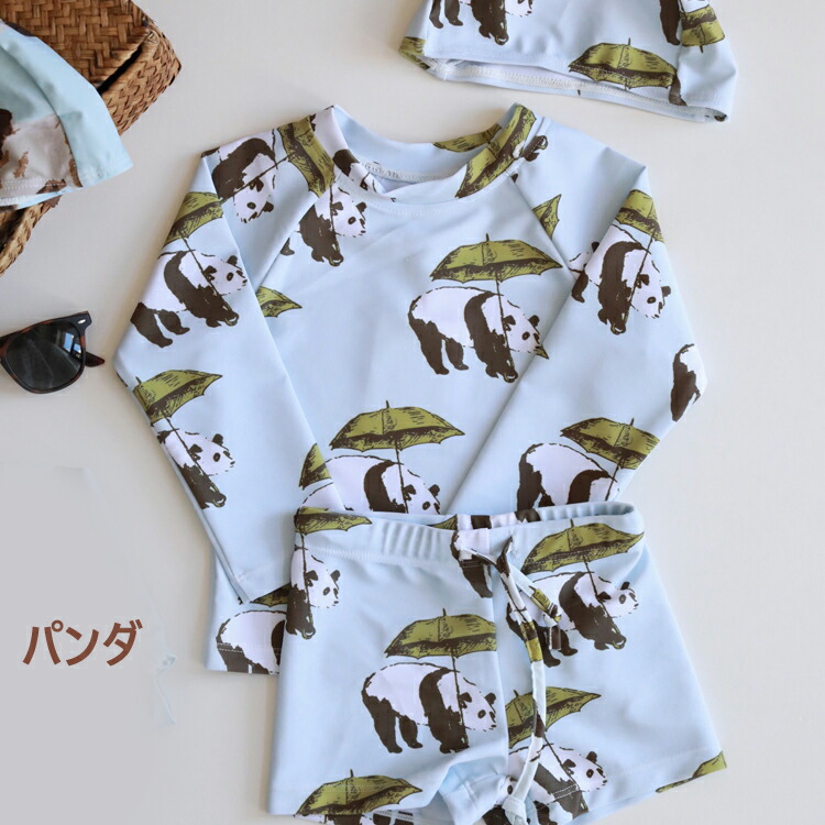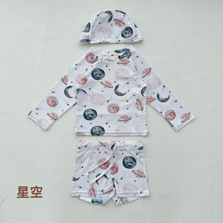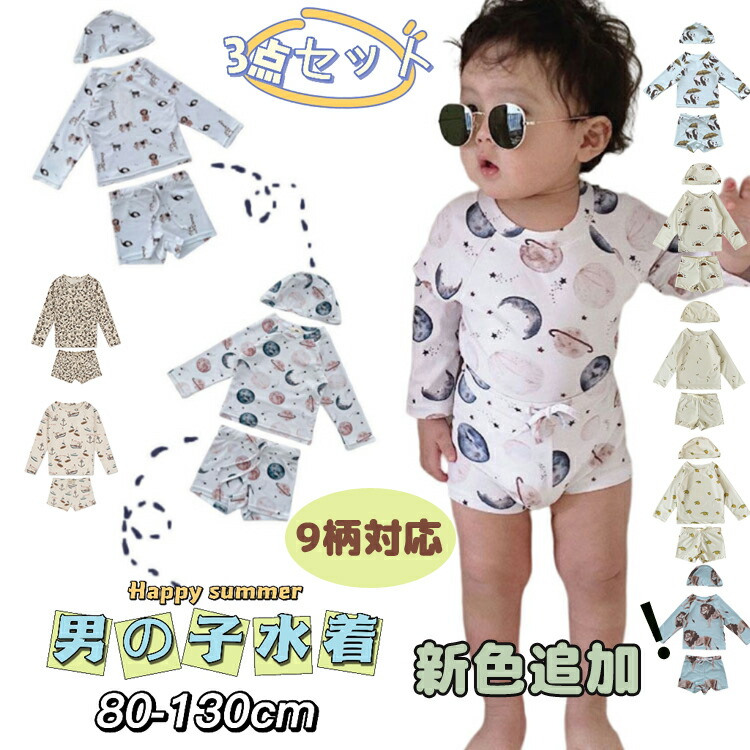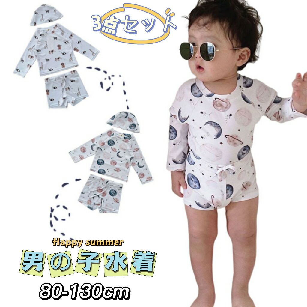 3点セット 男の子 みずぎ 上下セット キッズ 水着 新登場! 星空 動物 太陽 レモン ライオン パンダ 恐竜楽園 船 80 90 100 110