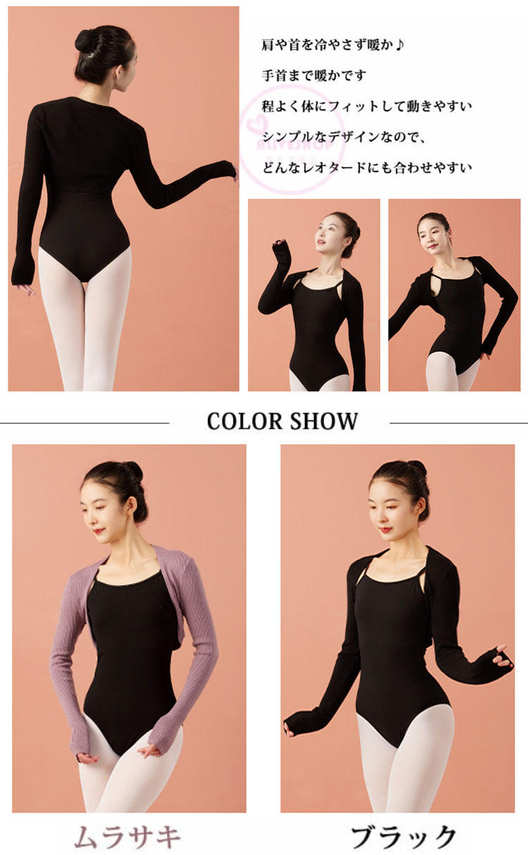 バレエ トップス 大人 レッスン アー ムラサキ ブラック M L