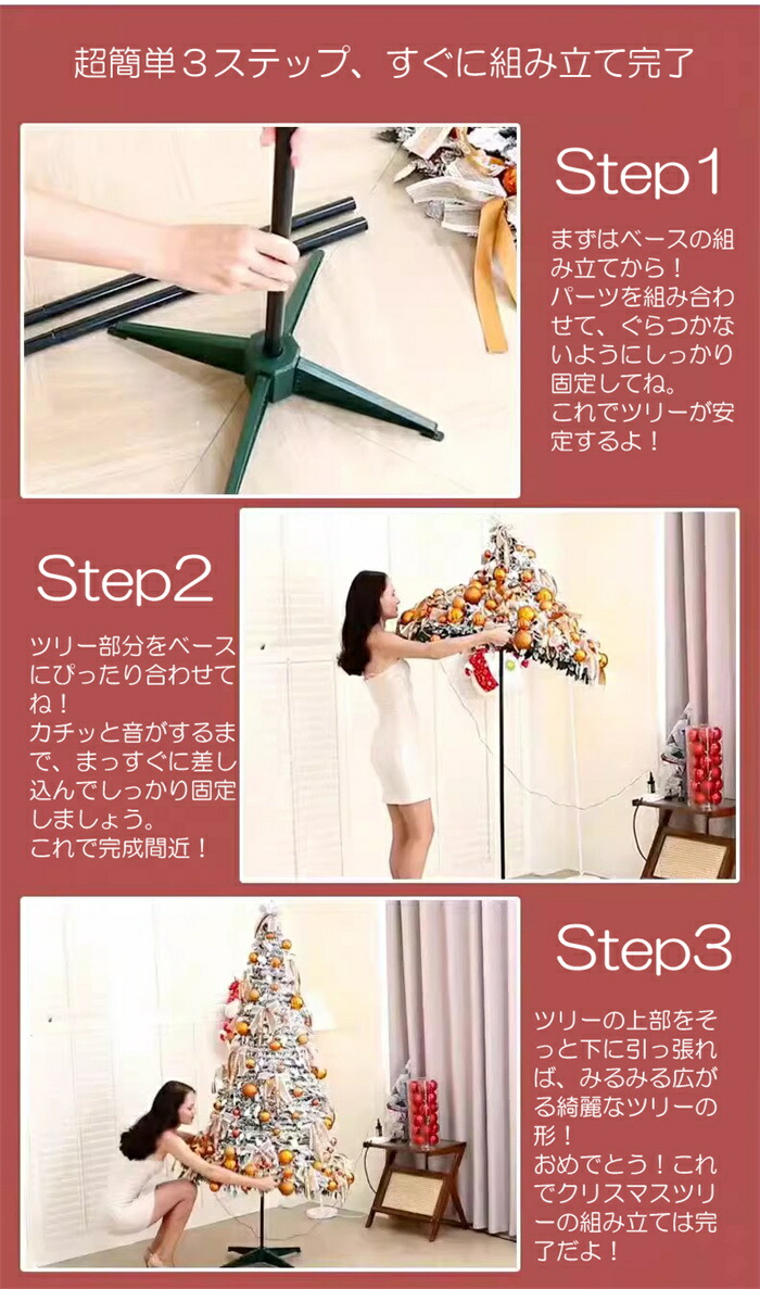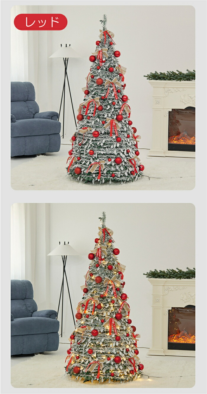 クリスマスツリー 伸縮式 北欧風 家庭 レッド ピンク どういろ 150CM 180CM 210CM