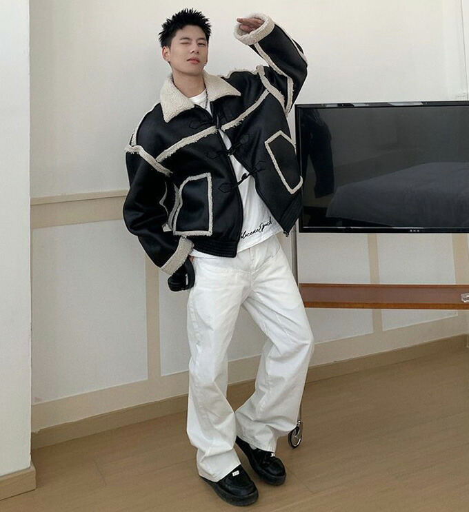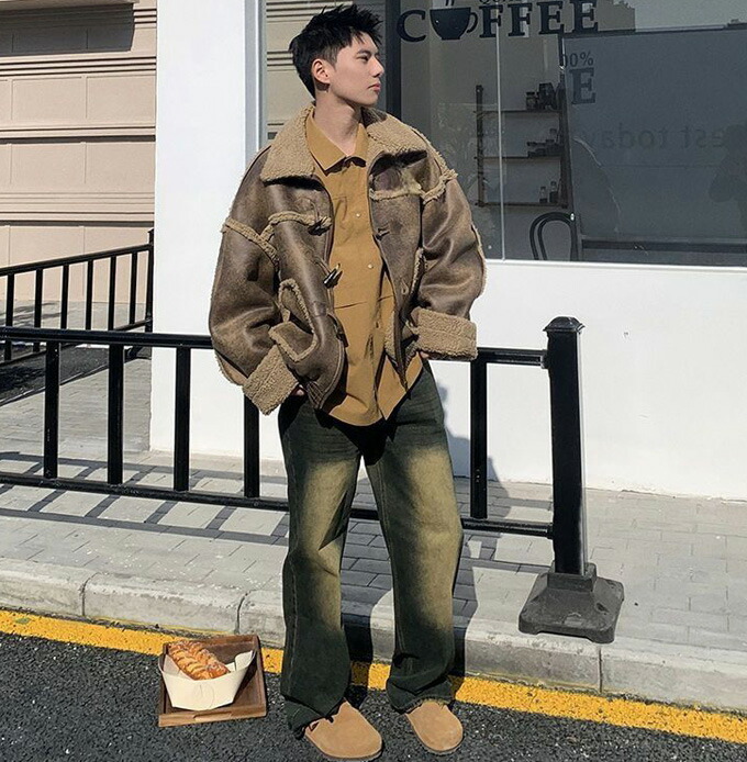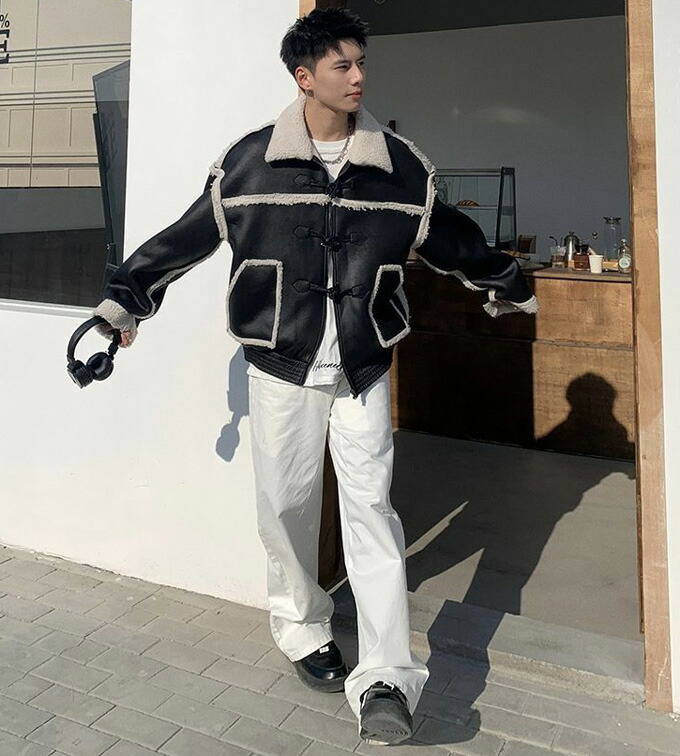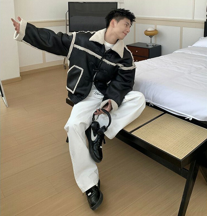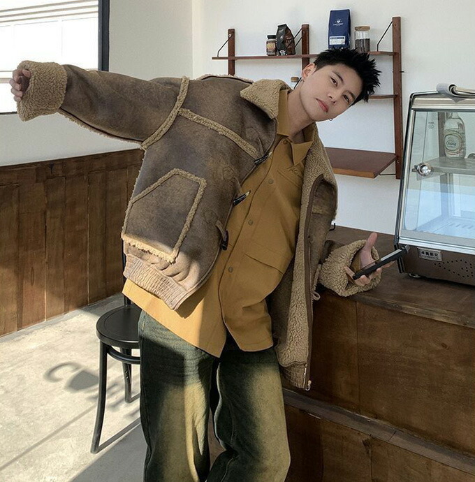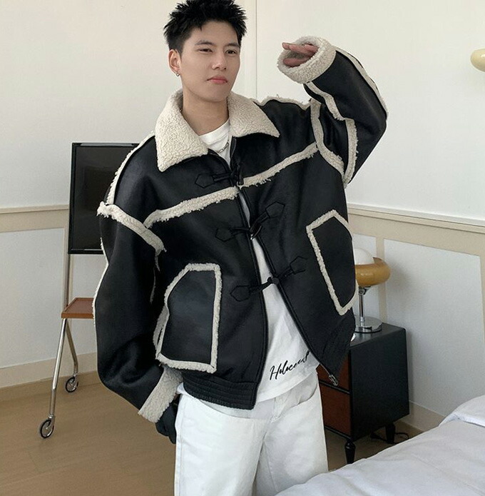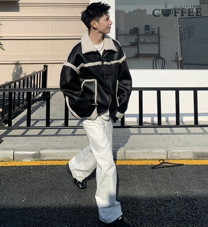 ブルゾン ムートンジャケット ライダー メンズファッション 新作 ブラック コーヒー色 S M L XL