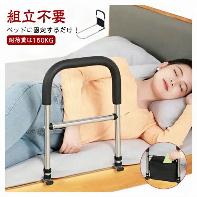 ベッドに固定するだけ!折りたたみ可能ベッド用手すり。【組立不要】【耐荷重は150KG】